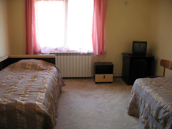две основные кровати, нет возможности для доп. места, телевизор, телефон, мини бар, фен, ванная комната с гидромассажной ванной.