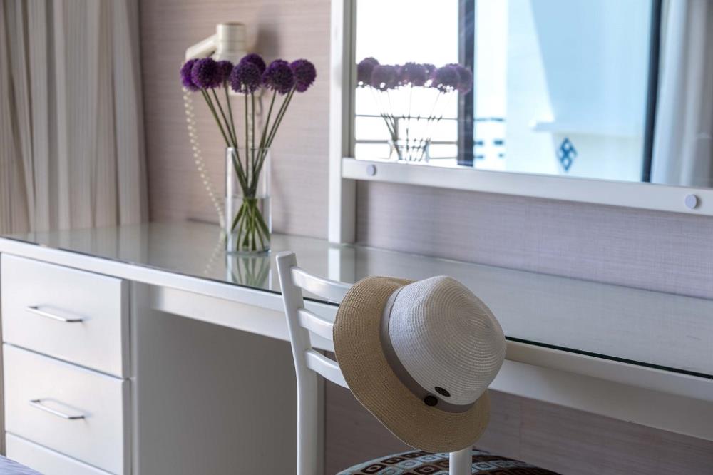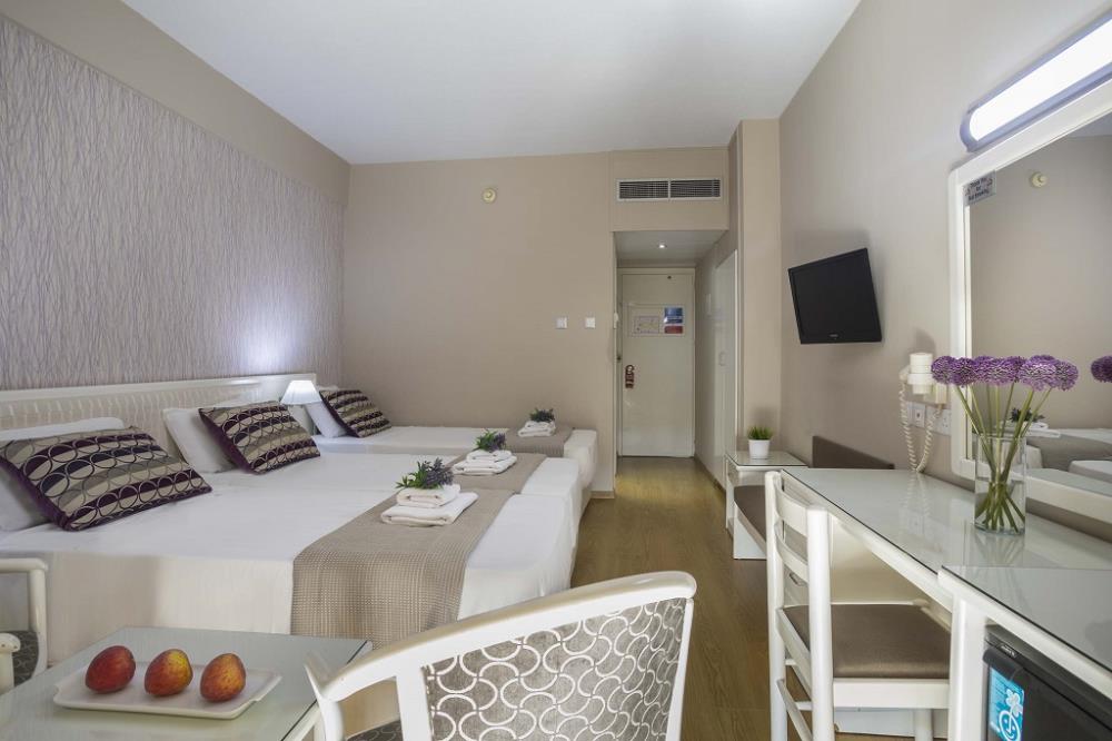 Готель складається з двох корпусів. Усі 147 номерів (бічний вид на море та внутрішній вид) були повністю відремонтовані та пропонують усі зручності 4-зіркового курорту. Усі номери оформлені в сучасному стилі зі світлими текстурами та сучасними меблями. Twin Inland View Twin Side Sea View Family Room Inland View Family Room Side Sea View Triple Room В номерах: Ванна кімната Фен для волосся Балкон або тераса Електричний чайник Кабельне/супутникове телебачення Телефон Безкоштовний Wi-Fi Обслуговування номерів (за додаткову плату) Кондиціонер/опалення в залежності від сезону Сейф (за додаткову плату) Міні-холодильник