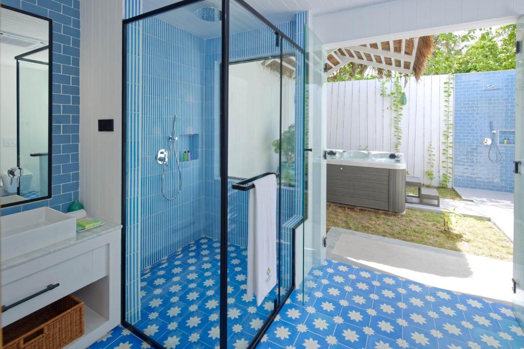 Deluxe Beach Villa (52 м2, макс. 3 чи 2+1 чол.+інф.). Аналогічні Beach Villa, але додатково мають ванну у ванній кімнаті та душ на відкритому повітрі.