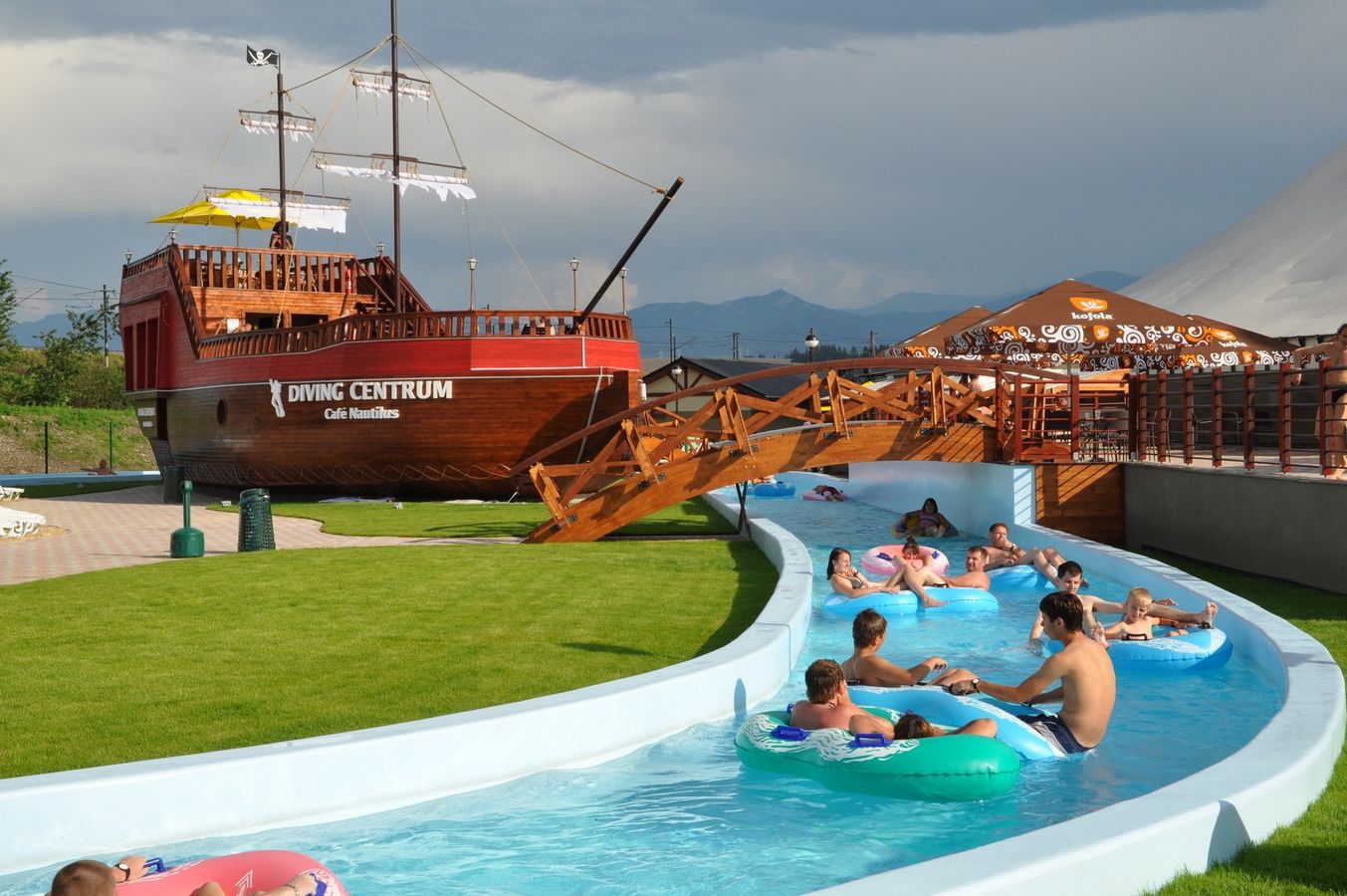 Уже давно в Липтовській долині були виявлені джерела термальних вод. Нагріта до 60°С вода піднімається до глибини 1987 метрів, її мінеральний склад створений для двигуна. Зараз в парку 8 термальних басейнів, температура води в них від 26 до 38°С. Усі вони розташовані під відкритим небом, причому два з них – плавальні, 5 – релаксаційні, а в одному розташовані 3 горки та водні атракціони.