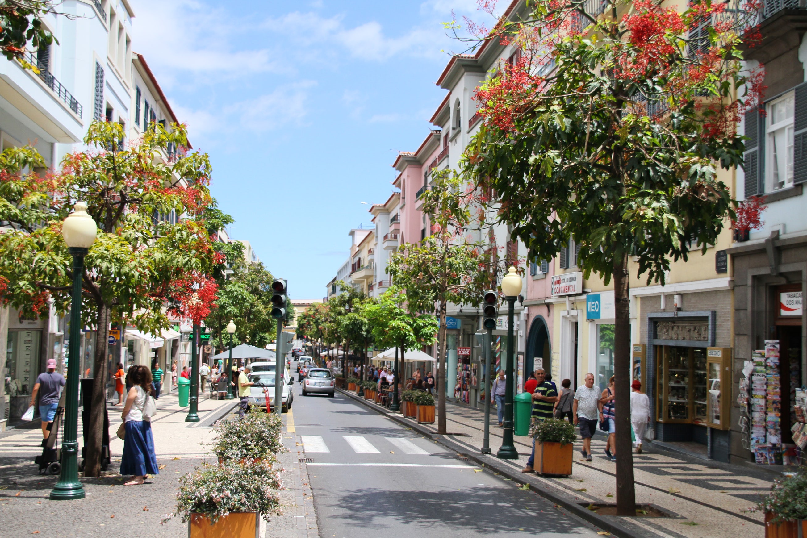 Адміністративний центр та головний порт португальського острова Мадейра. Це стародавнє і дуже красиве місто зі старовинними палацами та площами, сучасними готелями та магазинами, що простяглося вздовж узбережжя. А піднявшись на підйомнику до ботанічних садів, можна насолоджуватися видом міста з висоти на висоті пташиного льоту, вдихаючи солонувате повітря окуану... Головна пішохідна вулиця забита численними барами та кав'ярнями.