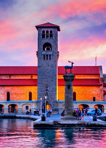 Родос. Адміністративний центр острова, що знаходиться на півночі, на березі Родоської протоки. Саме тут розташовувалося одне із Семи чудес світу. Туристів тягне сюди Старе місто з його історичними пам'ятками. У ньому розташовані Родоська фортеця, побудована лицарями-шпитальєрами, порт Мандракі, античний театр, мечеть та чудовий палац. У сучасній частині також є чим зайнятися — провести час у нічних клубах, скуштувати страви місцевої кухні у ресторанах та прогулятися магазинами.