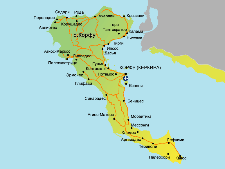 Корфу (Керкіра) - куточок Італії на грецькій землі - є одним із найпопулярніших грецьких острів і одним з найвідоміших в Іонічному архіпелазі, розташовуючись у його північній частині. Він має м'який субтропічний, типово середземноморський клімат. Середня температура влітку +30°C, взимку +10°C. Дощі йдуть із жовтня до березня. Острів Корфу в давнину надихав багатьох поетів та художників, а в наші дні став одним із найфешенебельніших курортів Греції. Це один із перших островів, який почали відвідувати туристи, тому інфраструктура тут розвинена на дуже високому рівні. Водночас у маловідвідуваних гірських куточках збереглися справжні грецькі поселення, які приваблюють гостей своєю спокійною, тихою атмосферою та чистим повітрям. Порізана берегова лінія з безліччю бухт і гротів, піщані та скелясті пляжі, схили гір, усипані квітами, чиста смарагдова вода Іонічного моря надають острову романтичного характеру і залишають незабутні враження.