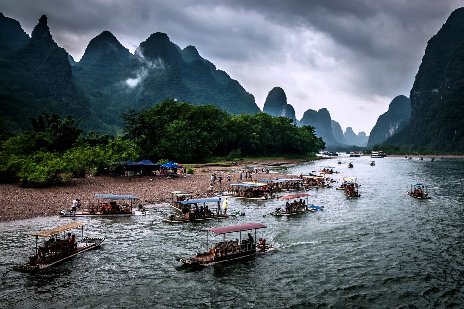 КРУІЗ ПО РІЧЦІ ЛІЦЗЯН, яка вражає своєю чистотою, прозорістю і, звичайно ж, пейзажами, до причалу повітового міста ЯНШО, яке розташоване в оточенні 18 гірських піків і з висоти виглядає як серцевина квітки лотоса. За красу пейзажу, що гармонує із селянськими полями, ЯНШО має славу "першого пейзажного місця Гуйліня".