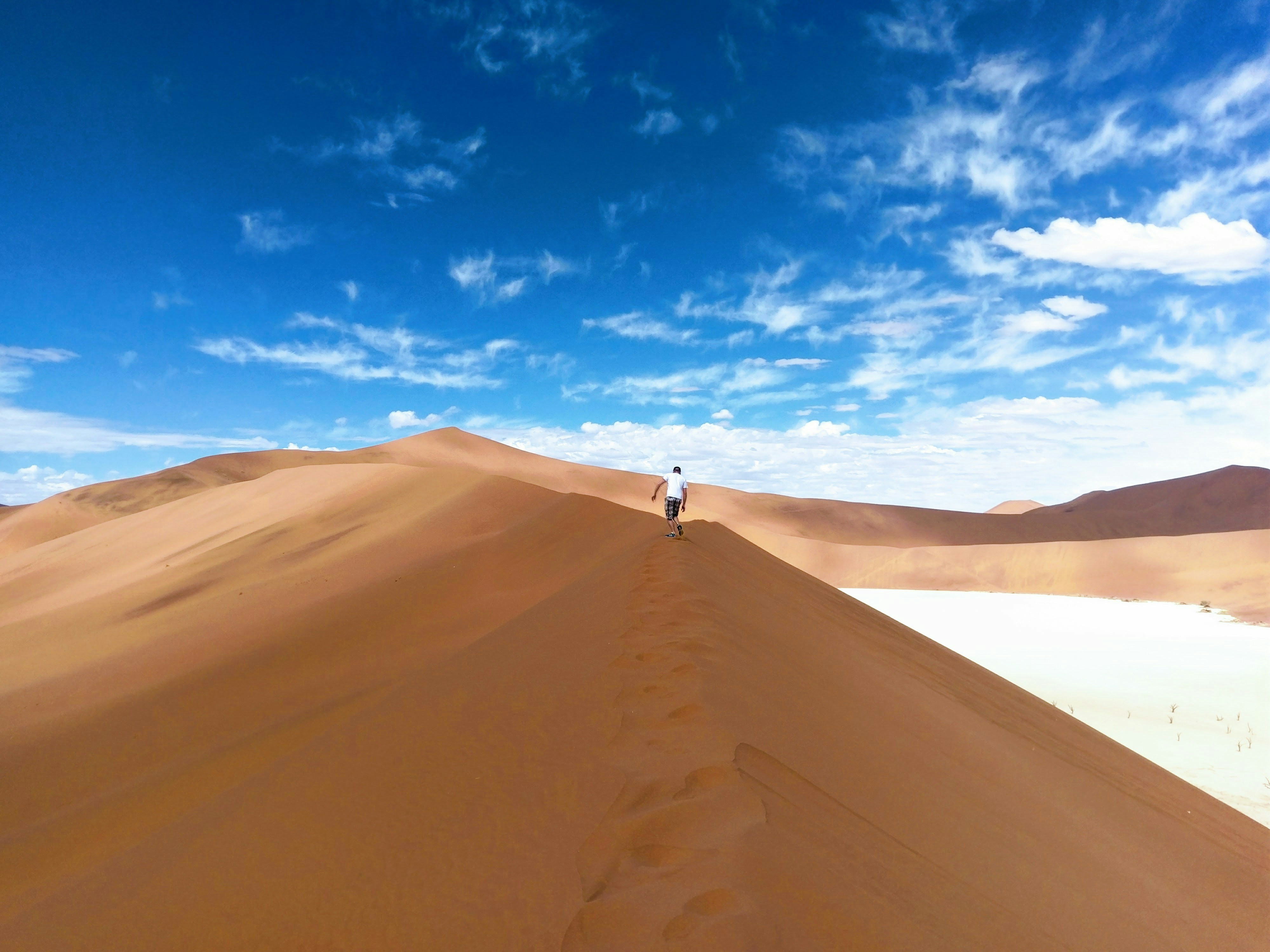 Перед сходом сонця ми починаємо захоплюючу пригоду в Соссусфлей - країні найвищих піщаних дюн на Землі! Піднявшись на вершину мальовничої Дюни 45, ми вирушимо бездоріжжям і прогуляємося пустелею серед помаранчевих, сюрреалістичних дюн долини Дедвлей. Краєвид величних дюн, що захоплює дух, зворушених світлом сонця, що сходить, і контрастними тінями, приголомшує своїми формами, образами і колярами! Височачи на 330 м над головою, знаходиться одна з найвищих дюн Наміба, «Великий Тато». Вишукані види, які варто зафільмувати.