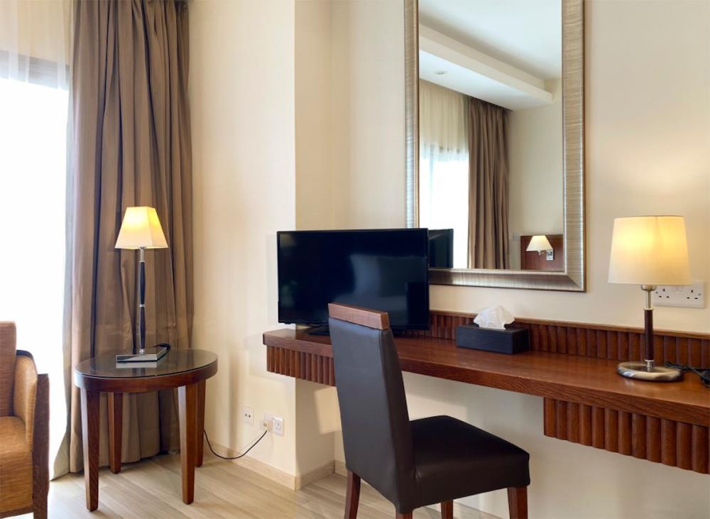 Classic Rooms У цих комфортабельних та елегантно оформлених номерах можуть розміститися до трьох гостей. Номери обладнані двома односпальними або двоспальними ліжками, дерев'яними підлогами, власним балконом з видом на місто або басейн і сади готелю, екологічно чистим туалетним приладдям, вікнами з подвійним склінням, сейфом, повністю укомплектованим міні-баром, феном, супутниковим телебаченням. , телефон прямого набору, будильник, прилади для приготування чаю та кави, кондиціонування повітря та безкоштовний бездротовий доступ до Інтернету. Ці номери оснащені ванною або душовою кабіною. Executive Rooms Пропонуючи однаково комфорт та стиль, представницькі номери відображають вишуканість сучасної резиденції в Лімассолі. При середньому розмірі 25 квадратних метрів міські притулки наповнені ретельно продуманими меблями та мають розкішну мармурову ванну кімнату з глибокою ванною або душовою кабіною. У цих номерах можуть бути розміщені до двох гостей. Представницькі номери, серед іншого, мають дерев'яні підлоги, власний балкон з кріслами з видом на місто або басейн і сади готелю, екологічно чисте туалетне приладдя, вікна з подвійним склінням, сейф, повністю укомплектований міні-бар, фен, телевізор з плоским екраном та супутниковими каналами. , телефон прямого набору, будильник, приладдя для чаю/кави, саморегулювальна система кондиціювання та безкоштовний бездротовий доступ до Інтернету. Executive Suites Люкси Artemis, Afrodite, Athena та Ariadne ідеально підходять для тих, кому потрібен додатковий простір та розкіш люксу. Підходящі для одномісного, двомісного або тримісного розміщення, представницькі люкси мають чудовий краєвид на басейн і мають двомісні номери з достатнім простором для третього ліжка. Люкси середньої площі 45 квадратних метрів втілюють сучасну житлову елегантність, яка відрізняє Ajax. Люкси, що складаються з красиво обставленої вітальні, окремої просторої спальні та обробленої мармуром ванної кімнати, ідеально підходять для розваг та тривалого перебування у космополітичному місті Лімасол. Представницькі люкси оснащені всіма необхідними зручностями, такими як двоспальне ліжко розміру "king-size", система кондиціювання повітря з автоматичним керуванням, екологічно чисте туалетно-косметичне приладдя, вікна з подвійним склінням, сейф, повністю укомплектований міні-бар, телефон з прямим набором номера. сигналізація, фен, набір для приготування чаю та кави. Всі люкси оснащені бездротовим доступом до Інтернету, халатами та тапочками для ще більш спокійного та комфортного відпочинку