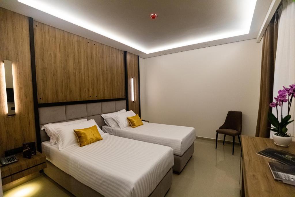 У готелі лише 110 номерів різних категорій. У кожному стандартному номері кондиціонер, телевізор, шафа для одягу, тумби, мінібар (платно), письмовий стіл, дзеркало, окрема ванна кімната (з/в, душ, туалетно-косметичні приладдя, фен, рушники). Балкони є не у всіх номерах. 50% стандартних номерів не мають балконів. Всі STD QDPL – не мають балконів. У разі наявності надається дитяче ліжечко (за запитом). STANDARD DBL room, близько 28 м2, двоспальне ліжко. Всього 57 номерів цієї категорії. STANDARD TRPL room, близько 30 м2, двоспальне ліжко та односпальне ліжко, є крісло (розкладається). Всього 28 номерів цієї категорії. STANDARD QDRPL room, близько 37 м2, двоспальне ліжко та два односпальні ліжка. Всього 10 номерів цієї категорії. FAMILY, близько 41 м2, двокімнатний номер, в одній спальні знаходиться двоспальне ліжко та односпальне та в іншій спальні - 2 односпальні ліжка, тільки одна ванна кімната в номері. Усього 5 номерів. У номері надається додаткове ліжко. JUNIOR SUITE, близько 43 м2, однокімнатний номер з двоспальним ліжком та зоною вітальні. Номер з видом на море. Усього 5 номерів. SUITE, близько 49 м2, двокімнатний номер з двоспальним ліжком у спальні та вітальнею з джакузі в іншій кімнаті. Номер з видом на море. Усього 5 номерів.