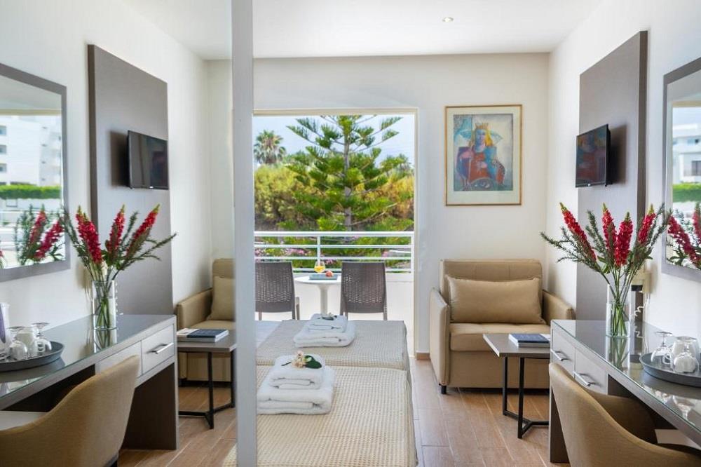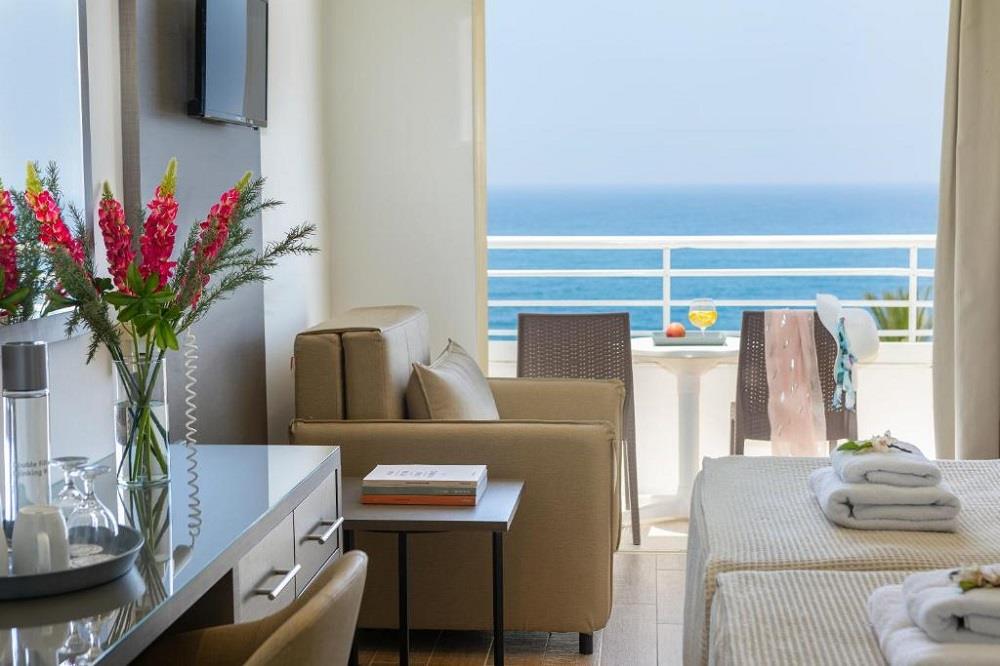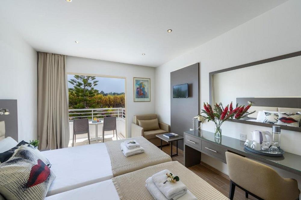 Всі номери оформлені в сучасному стилі в пастельних тонах з усіма зручностями, щоб Ваше перебування було максимально приємним. Насолоджуйтесь прекрасними видами на Середземне море, на великі плантації бананів та виноградники. У спальнях 2 односпальні ліжка або 2 двоспальні ліжка (за запитом). Двомісні номери можуть бути заброньовані як одномісні номери. Максимальне розміщення: 3 особи. У готелі також є невелика кількість сімейних номерів, де можуть розміститися до 4 осіб та невелика кількість номерів люкс. Це більш комфортні номери, в цих номерах є двоспальне ліжко, холодильник і кавоварку. Всі номери напівлюкс мають вид на середземне море.