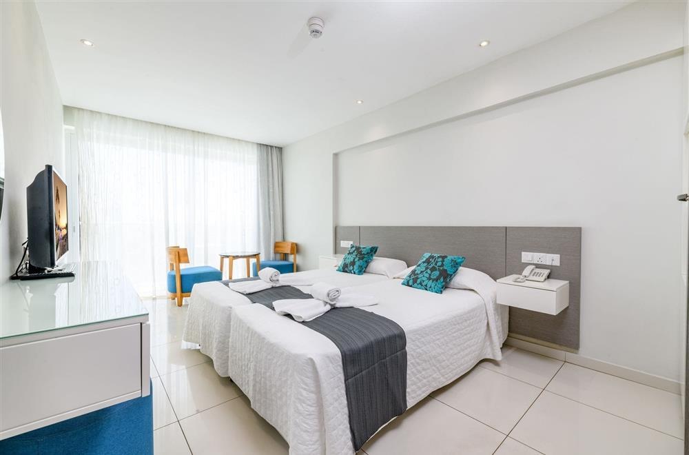 У готелі River Rock пропонуються добре спроектовані сучасні номери. Зі смаком оформлені, оздоблені та мебльовані номери з 2 односпальними ліжками та 2-спальними ліжками з балконом, звідки відкривається вид на басейн або внутрішній дворик, пропонують комфортне розміщення. У номерах і зонах загального користування готелю надається безкоштовний Wi-Fi. Усі 88 номерів мають власну ванну кімнату з душем, туалет, супутникове РК-телевізор, телефон, сейф, міні-холодильник, кавоварку, фен, центральне опалення, кондиціонер і окремий балкон. Twin Inland View Twin Pool View Family Room Inland View