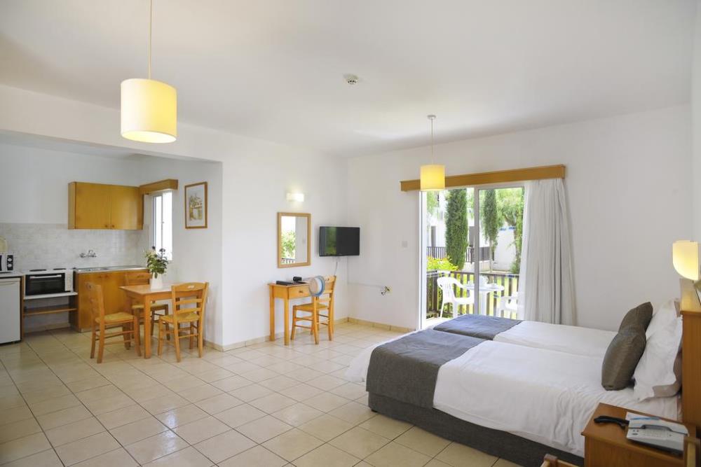 Akti Beach Village Resort розташований за 4 км від мальовничої рибальської гавані міста Пафос, з його численними ресторанами, барами та тавернами. Готель знаходиться в тихому місці в оточенні прекрасних садів з прямим доступом до пляжу і недалеко від головної дороги Корал Бей. Близько від готелю пролягає дорога, що веде до «Гробниці Королів». Ідеальне місце для приємного та спокійного відпочинку.