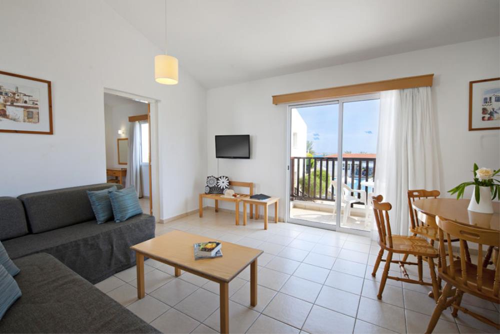 Akti Beach Village Resort пропонує просторі однокімнатні, односпальні та двоспальні апартаменти на будь-який смак. У нашому готелі буде комфортно сім'ям з чотирьох осіб і подружнім парам, які проводять медовий місяць. Всі номери люкс оснащені вітальнею з кухнею у відкритому плануванні, а також балконом та всіма сучасними зручностями.