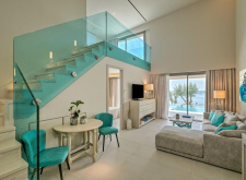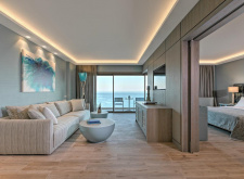Premium Deluxe Suite Front Sea View – 60 кв.м (макс. 2): розташовані номери на верхніх поверхах готелю, стильна вітальня, спальна кімната з двоспальним ліжком, простора ванна з душем та ванною, балкон. 2 з 4 сюїт розташовують кухонним куточком, а 2 сюїти без кухонного куточка мають додатковий туалет і душ.