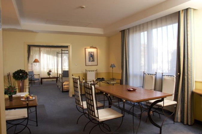 Business Suite (70 кв. м) — с видом на боковую улицу или Andrássy Avenue; состоят из спальни, гостиной с обеденным столом на 6 персон, ванной комнаты с джакузи и балкона.