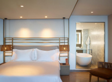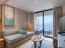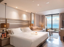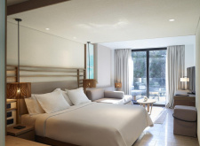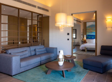 У готелі всього 159 номерів, сюїт та 37 вілл з власними басейнами. Grand Room Achilleion Hill View – 41 кв.м (макс. 2+1): номер з ліжком king-size або 2 односпальними ліжками, диваном-ліжком, невеликим столиком, ванною з душем, власним обладнаним балконом Grand Room Ionian Sea View – 41 кв.м (макс. 2+1): номер з ліжком king-size, диваном-ліжком, невеликим столиком, ванною з душем, власним балконом Junior Suite Ionian Sea View – 70 кв.м (макс. 3): номер відкритого планування з ліжком king-size, гостьовою зоною з диваном-ліжком, кріслом та невеликим столиком, ванною кімнатою з ванною та окремим душем, власний обладнаний балкон. Suite Ionian Sea View – 70 кв.м (макс. 3): спальня з ліжком king-size, окремою гостьовою зоною з диваном-ліжком та розсувними дверима, ванною кімнатою з ванною та окремим душем, обладнаним балконом Corner Suite Ionian Sea View – 80 кв.м (макс. 3): головна спальня з ліжком king-size, окрема гостьова зона з диваном, кріслом та невеликим столиком, ванна кімната з ванною та окремою душовою кабінкою, власний обладнаний балкон з панорамним видом на море Pool Suite Ionian Sea View – 84 кв.м (макс. 2+1): спальня з ліжком king-size, окрема вітальня з диваном-ліжком, обіднім столом, повністю обладнаним кухонним куточком, ванною кімнатою з ванною та душем, індивідуальний відкритий басейн площею 18 кв.м та зоною відпочинку Pool villa Ionian Sea View – 110 кв.м (макс. 2+1): спальня з ліжком king-size, окрема вітальня з обіднім столом, повністю обладнаним кухонним куточком, ванна кімнат з ванною та душем, просторий обладнаний балкон та басейном та зоною відпочинку. Pool Villa Two Bedrooms Ionian Sea View – 160 кв. м (макс. 4+1): 2 окремі спальні з ліжками king-size або односпальними ліжками, 1 ванна кімната з ванною та 1 ванна кімната з душем, простора вітальня з обіднім столом, обладнаний кухонним куточком, обладнаний балкон з басейном площею 18 кв. .м та зоною відпочинку Pool Villa Three Bedrooms Ionian Sea View – 220 кв.м (макс. 7): дворівнева вілла, головна спальна кімната з ліжком king-size та ванною кімнатою з ванною - на нижньому рівні, 2 окремими спальнями з ліжками king-size та 2 ванними кімнатами з ваннами - на верхньому рівні, окрема вітальня з обіднім столом, повністю обладнаним кухонним куточком, балкон з басейном, зоною відпочинку та душовою. Pool Villa Four Bedrooms Ionian Sea View – 327 кв.м (макс. 9): верхній поверх - головна спальня з ліжком king-size та ванною кімнатою з ванною, 1 спальня з ліжком king-size, 1 спальнею з односпальними ліжками, ванною з душем; перший поверх – спальня з односпальними ліжками, ванна з душем, вітальня з обіднім столом, диваном-ліжком, повністю обладнаним кухонним куточком, ліфт, камін, відкритий басейн площею 28 кв. У номерах: Кондиціонер. Банні халати та тапочки. Банні приналежності. Безкоштовний Wi-Fi. Міні-бар (платно). Телефон. Супутникове телебачення. Набір для приготування кави/чаю. Сейф. Вітальний напій. Щоденне прибирання номера. Приготування номера до сну