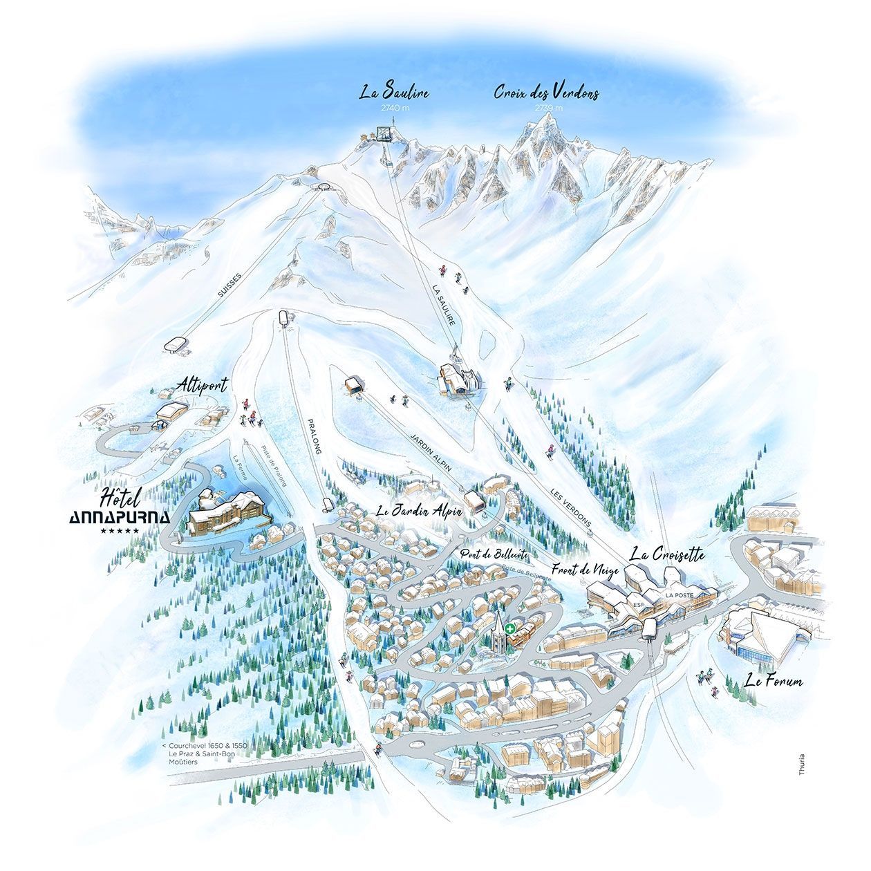 Готель Аннапурна розташований вище всіх інших готелів в Куршевелі на висота 1900 метрів над рівнем моря і з готелю відкривається винятковий вид на Південну сторону, поруч зі схилом Пралонг. Ви можете прямо з готелю виїхати на лижні схили і також легко повернутися по спусках в готель, одночасно насолоджуючись чудовими сніговими видами, які оточують готель. Місцезнаходження і висота, на якій розташований готель Аннапурна в Куршевелі, зі своїми номерами, більшість з яких звернуто великими панорамними вікнами на південь, пропонує гостям природне світло і чудові гірські краєвиди. Ідеальне місце для вашого активного відпочинку в зоні гірськолижних трас – п’ятизірковий готель Куршевель 1850 з чудовим видом на південь і спускові траси, атмосфера якого дасть вам можливість відчути себе в гармонії з оточуючими мальовничими пейзажами і приголомшливими гірськими масивами. На території готелю Аннапурна дітям надані найкращі умови перебування, здатні забезпечити їм невимушену атмосферу для ігор і відпочинку, завдяки великому простору всередині будівлі і за його межами, забезпеченому всіма заходами безопасності. 82% гостей регулярно зупиняються в Аннапурна. Така відданість клієнтів є відмінним доказом непорівнянних якостей команди готелю.