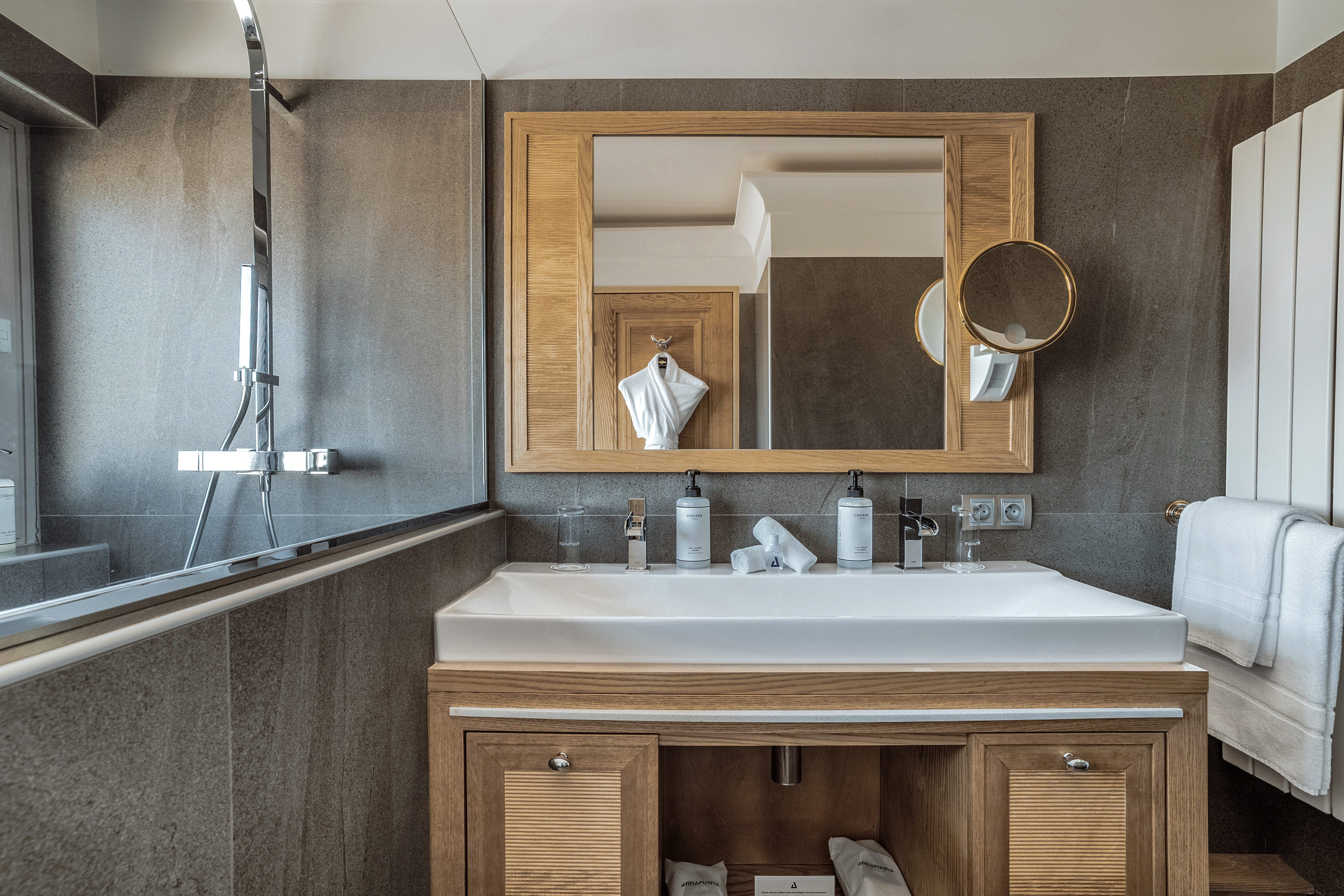 RENDEZ-VOUS - LA TABLE DE L'ANNAPURNA ТРАДИЦІЙНА ФРАНЦУЗЬКА КУХНЯ Ресторан Rendez-Vous з його барвистим поєднанням ялинової зелені, жовтого, льодово-блакитного та теракотового кольорів, лісовими шпалерами та безліччю затишних столиків є живим та яскравим гурманським серцем готелю Annapurna. Жителі та гості готелю насолоджуються традиційною французькою кухнею, що використовує місцеві та сезонні продукти та натхненною шеф-кухарями минулих років. «Ми спробуємо привнести трохи незвичайного в страви, що стали звичайними», - говорить шеф-кухар Жан-Ремі Кайон, який пропонує вишукані шматки м'яса або риби, вегетаріанські страви і велику класику французької кухні, що подаються за столом на п'єдесталі, різьблені. На десерт шеф-кондитер Теофан Фоше щодня готує крепи Сюзетт, суфле Шартрез та іншу французьку випічку: флан патисьє, яблучний татін та легендарний Куршев'ель, його фірмовий делікатес із рожевого пралине. Увечері тут панує ще тепліша атмосфера, яку час від часу доповнюють виступи артистів, музикантів, співаків чи фокусників. Ресторан відкритий для сніданків з 7:30 до 10:30, обідів з 12:30 до 14:00 та вечерь з 19:30 до 21:00 щодня.