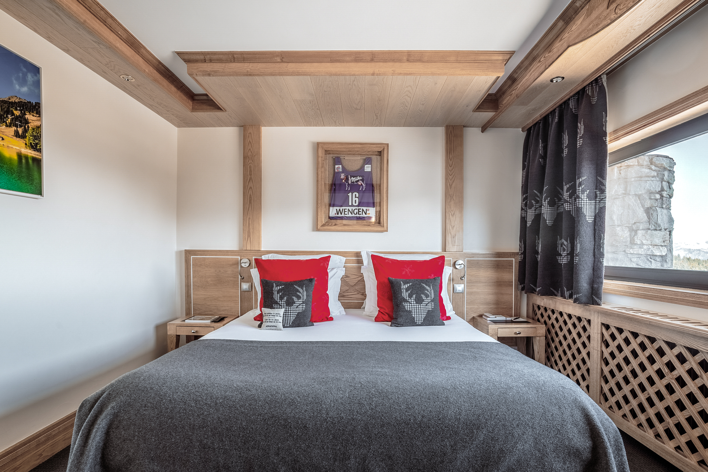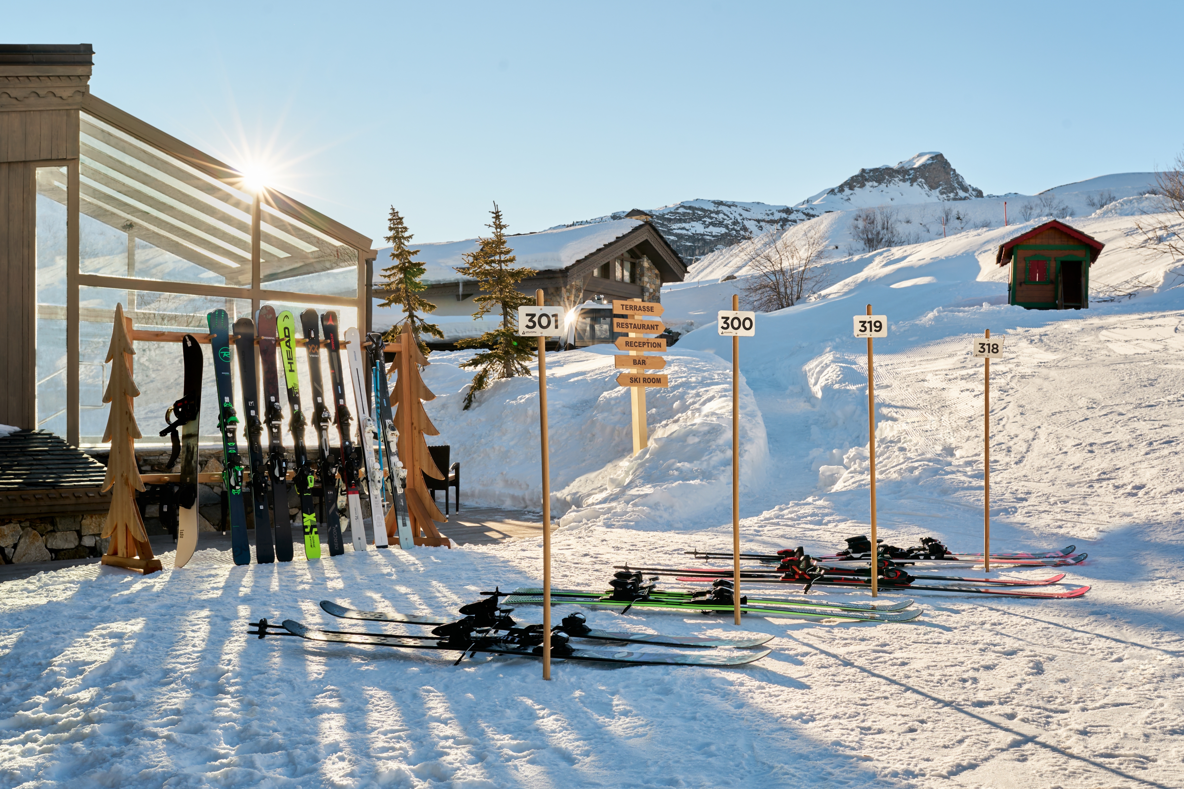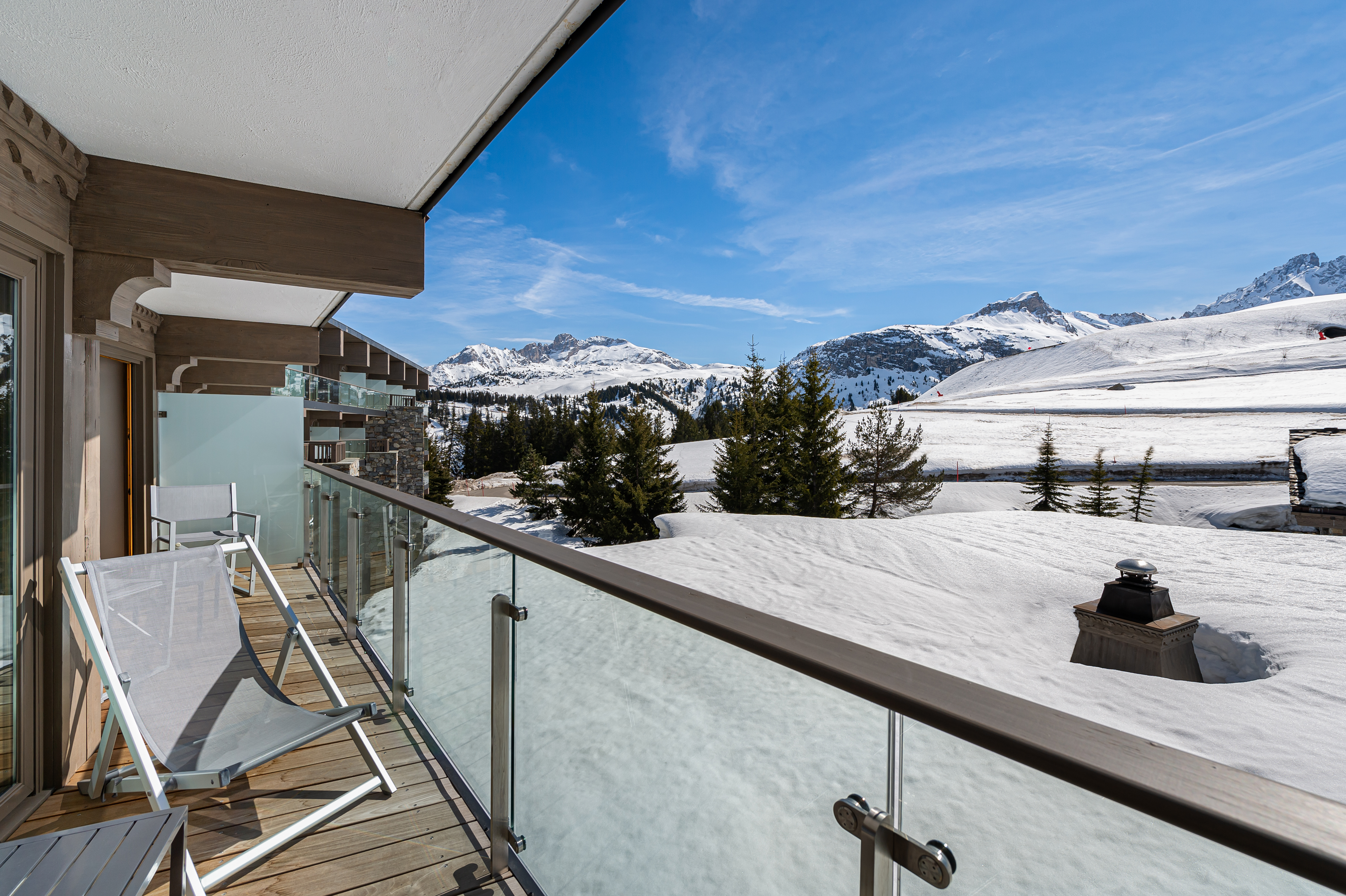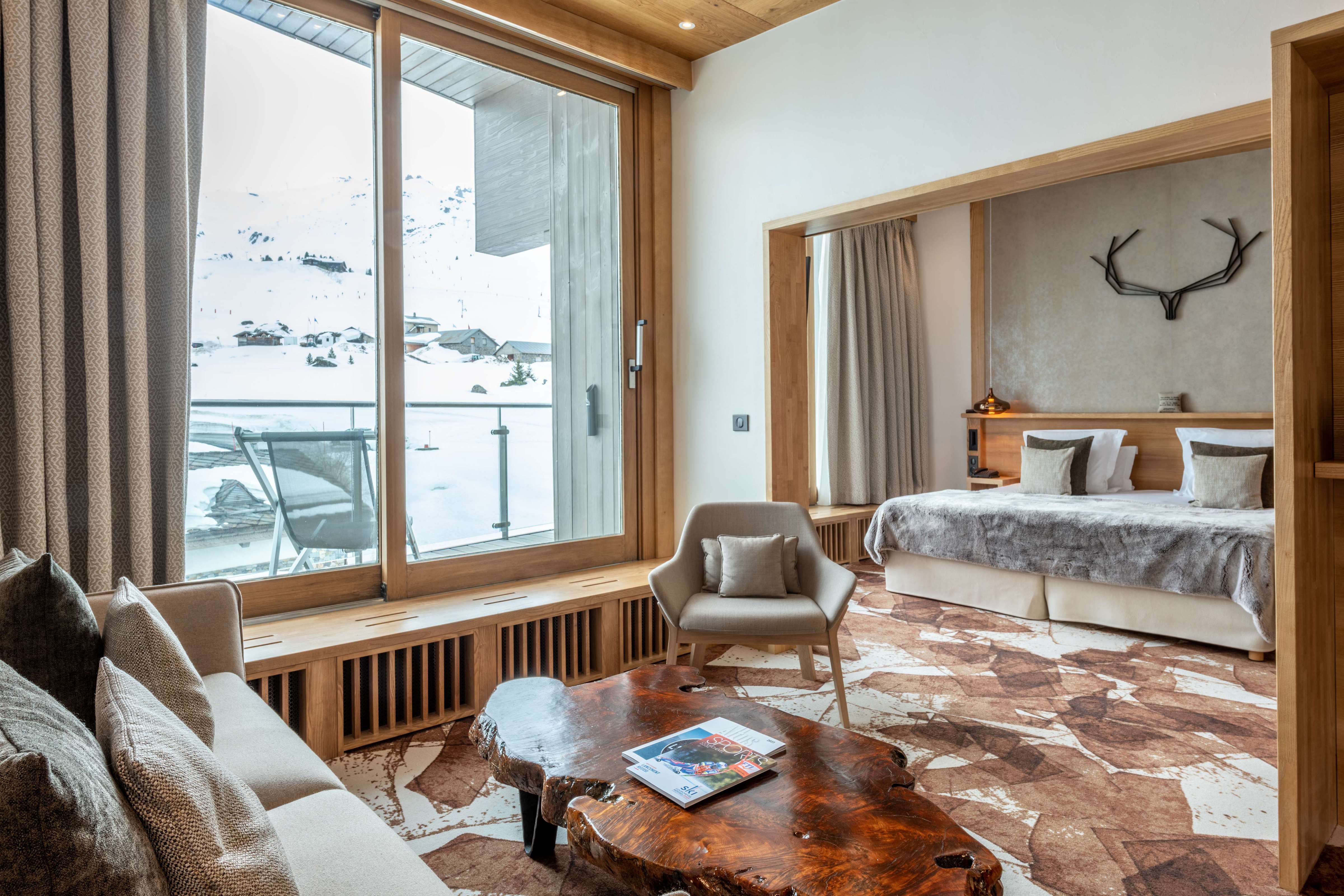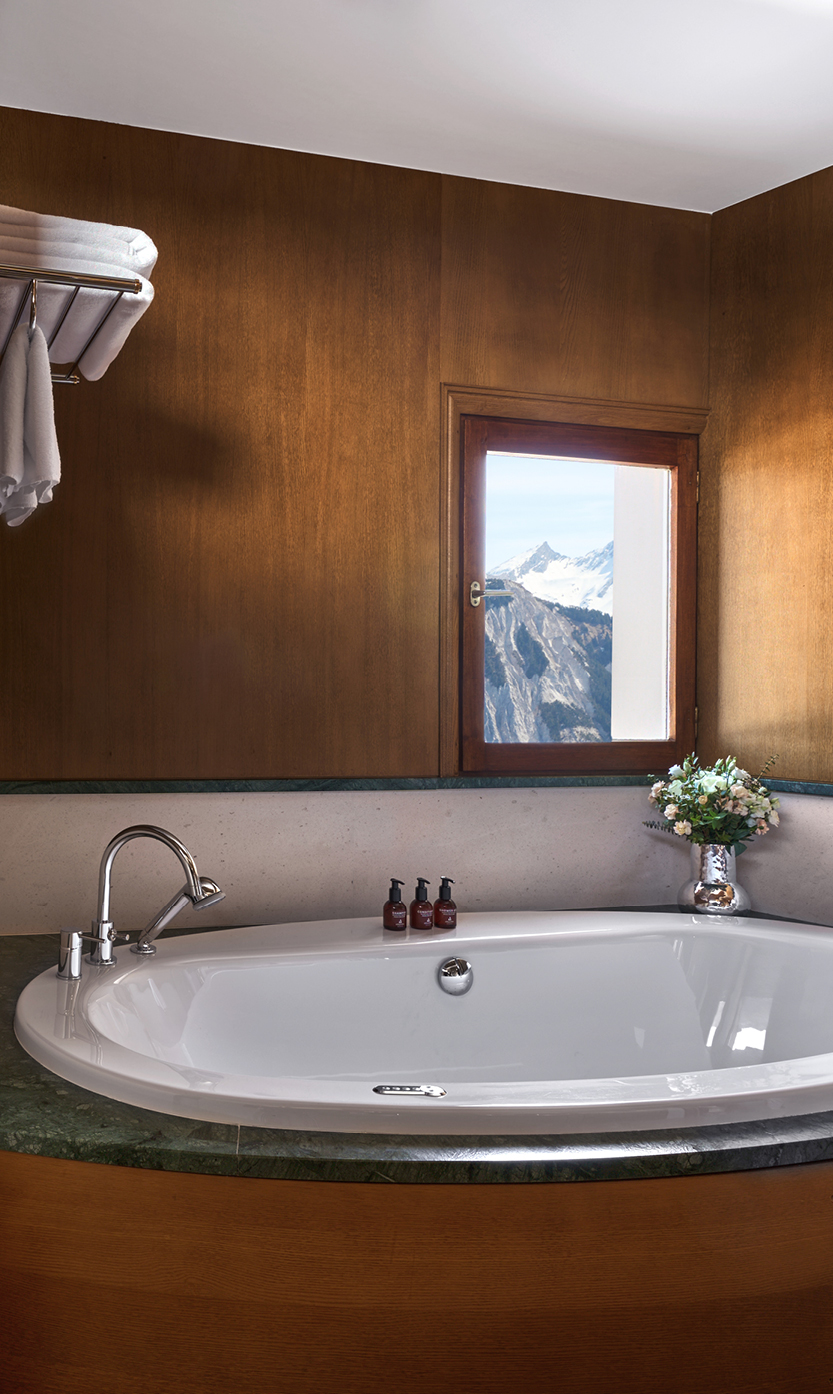 Standard Double Room Площа 26 м², без балкона. Двухмісні номери з ванною декоровані світлим деревом. Вид з вікон – на долину. Saulire Double Room Площа 30 м² з видом на юг. Двухмісні номери з ванною декоровані світлим деревом. В більшості кімнат є балкони. Family Apartment(Interconnecting Rooms) Площа номера близько 56 м².Складаються з Saulire Double Room з видом на південь і Standard Double Room з видом на схід чи захід (кожен номер з ванною). Junior Suite Площа номера близько 44 м².Розташовані на південній стороні з балконамі. Складаються з салону з балконом і видом на південь, спальні і з ванної кімнати. Suite Annapurna Площа номера близько 60 м².Складається з холу, вітальні, двомісній спальні і ванної кімнати. Балкон з видом на південь. Makalu Suite Площа номера близько 65 м² Оформлений в сучасному елегантному стилі, розташований в новій частині готелю, під традиційного альпійського дахом. Складається із спальні з двоспальним ліжком, вітальні з обідньою зоною, ванни і туалетної кімнати, розташованих в мезоніні, балкона з видом на долину. Додатково в номері – 2 телевізори, DVD player. Suite К2 Площа номера близько 94 м² Розкішний номер, розташований в новій частині готелю, під традиційниим альпійським дахом. Складається з холу-передпокою, вітальні з каміном, обідньої і робочої зонами, спальні з двоспальним ліжком, просторої ванної кімнати з ванною, душовою кабіною та сауною, балкона, виходящегона південну сторону. Додатково в номері – 2 телевізори (один – з плазмовою панеллю), DVD player. Suite Everest Площа номера близько 149 м² Розкішний номер, розташований в новій частині готелю, під традиційного альпійського дахом. Складається з холу-передпокою, вітальні площею 51 м2 з каміном, робочої і обідньої зонами, ще однією вітальні в мезоніні, 2 спалень з двоспальними ліжками, 2 ванних кімнат з ванними і душовими кабінами (одна – з сауною і вікнами), балконів, які виходять на південну і західну сторони. Додатково в номері – телевізор (з плазмовими і LCD екранами), DVD player.В номері: балкон або без балкона, сейф, міні-бар, телефон, високошвидкісна інтернет-лінія, багатоканальне супутникове телебачення, фен.