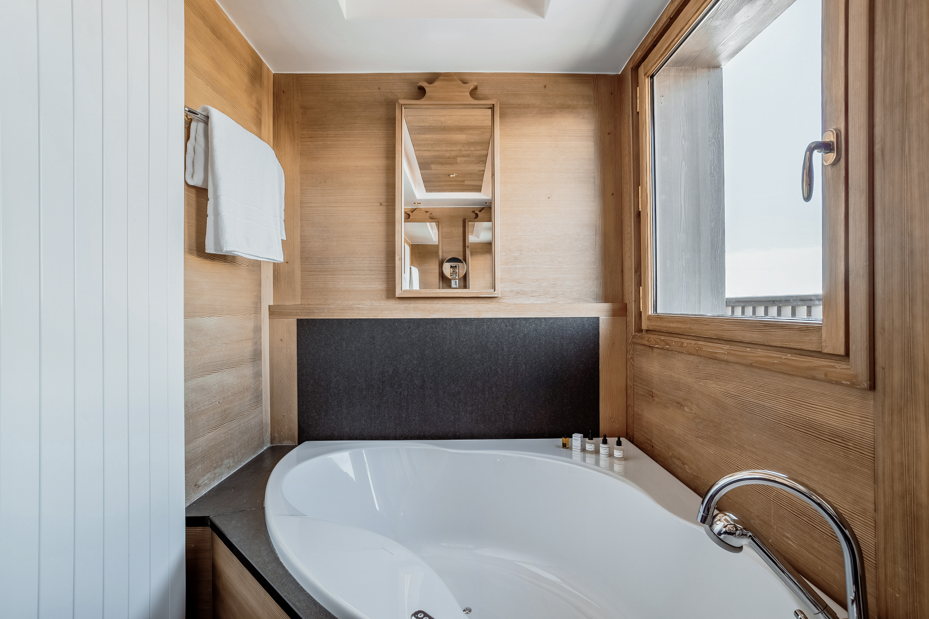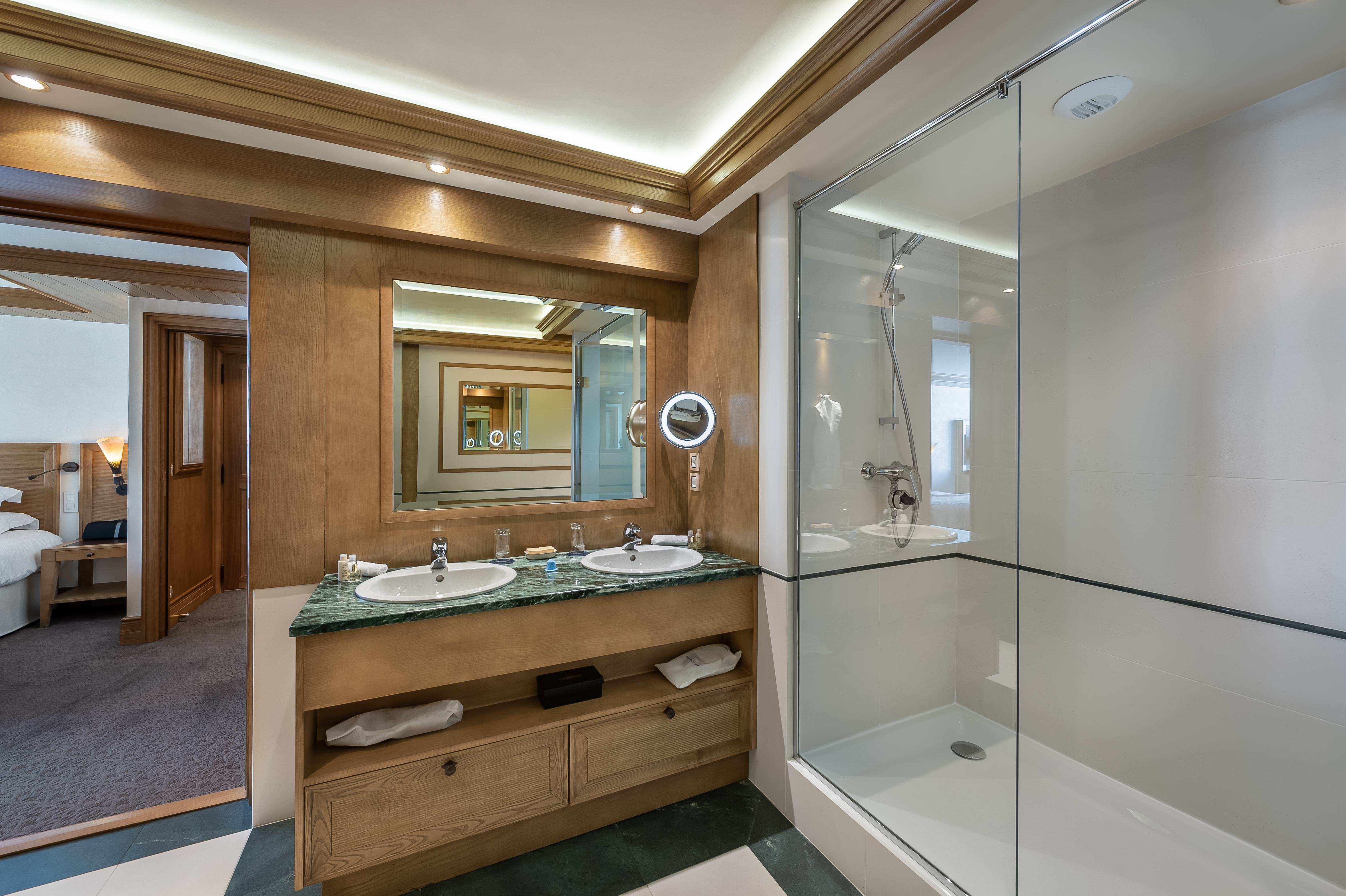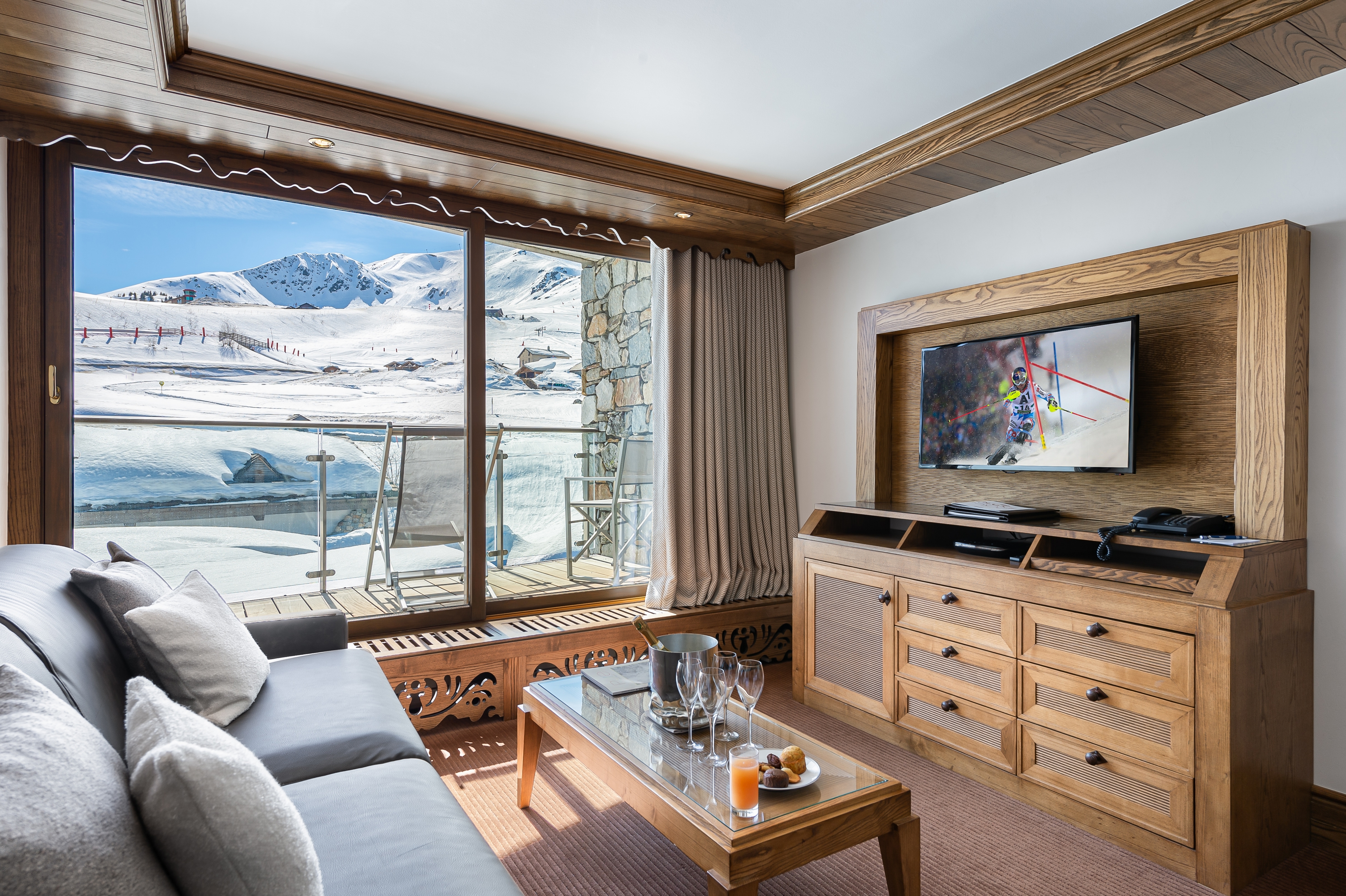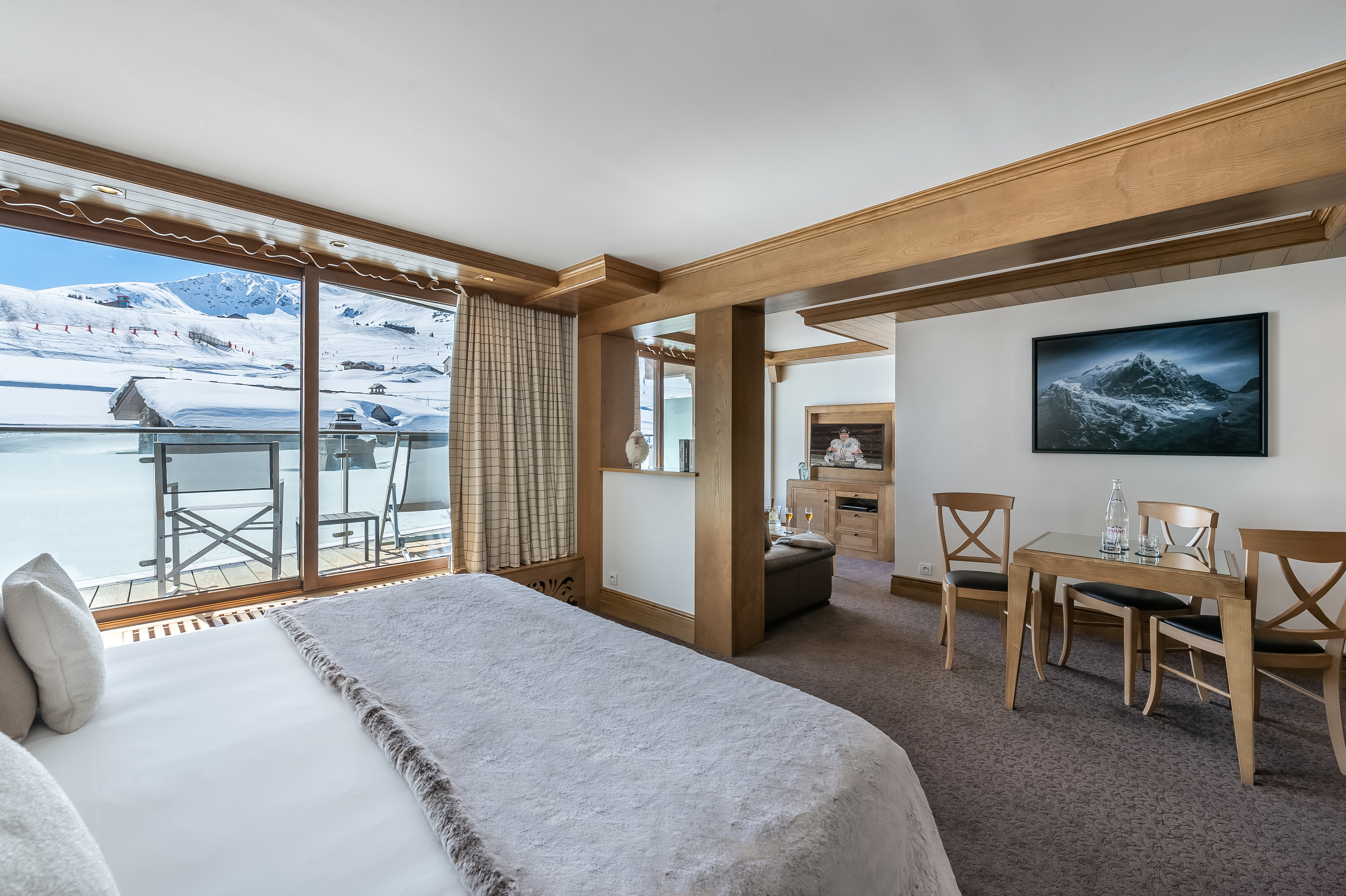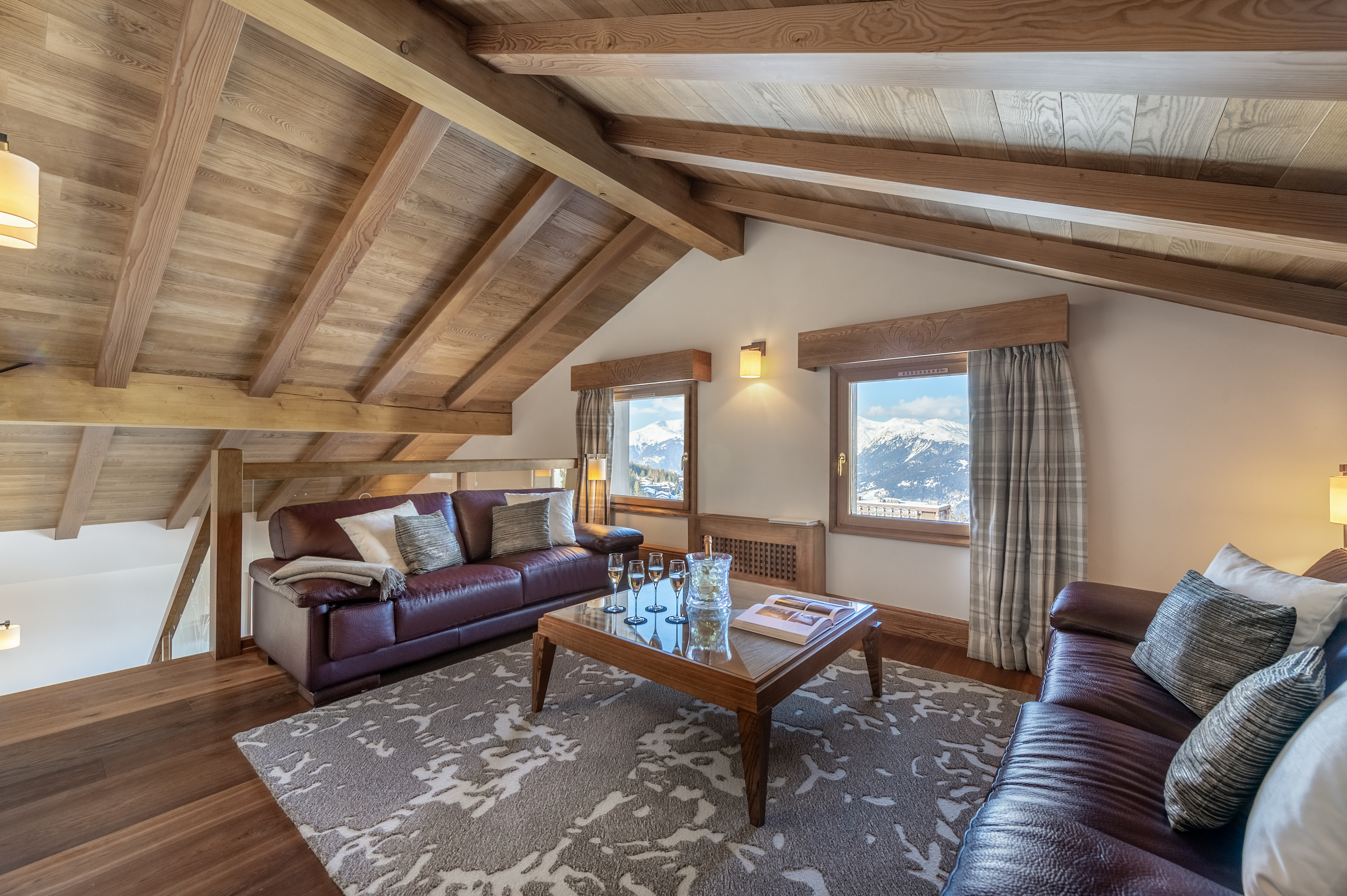 Standard Double Room Площа 26 м², без балкона. Двухмісні номери з ванною декоровані світлим деревом. Вид з вікон – на долину. Saulire Double Room Площа 30 м² з видом на юг. Двухмісні номери з ванною декоровані світлим деревом. В більшості кімнат є балкони. Family Apartment(Interconnecting Rooms) Площа номера близько 56 м².Складаються з Saulire Double Room з видом на південь і Standard Double Room з видом на схід чи захід (кожен номер з ванною). Junior Suite Площа номера близько 44 м².Розташовані на південній стороні з балконамі. Складаються з салону з балконом і видом на південь, спальні і з ванної кімнати. Suite Annapurna Площа номера близько 60 м².Складається з холу, вітальні, двомісній спальні і ванної кімнати. Балкон з видом на південь. Makalu Suite Площа номера близько 65 м² Оформлений в сучасному елегантному стилі, розташований в новій частині готелю, під традиційного альпійського дахом. Складається із спальні з двоспальним ліжком, вітальні з обідньою зоною, ванни і туалетної кімнати, розташованих в мезоніні, балкона з видом на долину. Додатково в номері – 2 телевізори, DVD player. Suite К2 Площа номера близько 94 м² Розкішний номер, розташований в новій частині готелю, під традиційниим альпійським дахом. Складається з холу-передпокою, вітальні з каміном, обідньої і робочої зонами, спальні з двоспальним ліжком, просторої ванної кімнати з ванною, душовою кабіною та сауною, балкона, виходящегона південну сторону. Додатково в номері – 2 телевізори (один – з плазмовою панеллю), DVD player. Suite Everest Площа номера близько 149 м² Розкішний номер, розташований в новій частині готелю, під традиційного альпійського дахом. Складається з холу-передпокою, вітальні площею 51 м2 з каміном, робочої і обідньої зонами, ще однією вітальні в мезоніні, 2 спалень з двоспальними ліжками, 2 ванних кімнат з ванними і душовими кабінами (одна – з сауною і вікнами), балконів, які виходять на південну і західну сторони. Додатково в номері – телевізор (з плазмовими і LCD екранами), DVD player.В номері: балкон або без балкона, сейф, міні-бар, телефон, високошвидкісна інтернет-лінія, багатоканальне супутникове телебачення, фен.