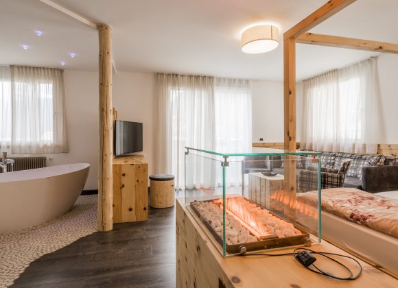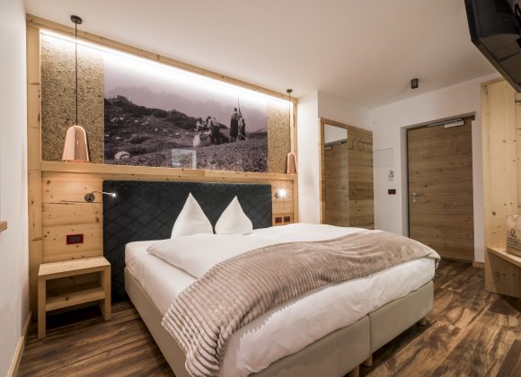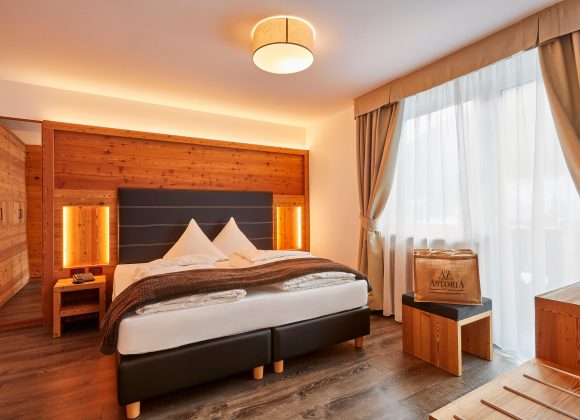 SPA SUITE Великий люкс (48 м2) з натуральної швейцарської сосни для тих, хто шукає комфорту на 360°, балкон з прекрасним видом на Катіначчо, інфрачервона сауна для пар, велика ванна в номері паровий камін, ванна кімната з кришталевою душовою кабіною, туалет і біде в окремій кімнаті, набір чайника з вибором оздоровчих трав'яних чаїв, м'які гіпоалергенні ковдри (з можливістю класичного італійського ліжка з простирадлами, ковдрами та покривалами), спа-сумка з м'якими халатами, капцями та рушником для сауни, телефон, телевізор, сейф, wifi, міні-бар. Розміщення домашніх тварин у номерах цієї категорії не допускається SPA SUITE DELUXEЧудовий люкс для оздоровлення на 360°: сосновий ліс, гідромасажна ванна Harmony, багатофункціональна оздоровча кабіна Sweet Steam Pro від Starpool, чудовий вид на Вернель (Мармоладу). 36 м2 з балконом, м'які гіпоалергенні ковдри (з можливістю класичного італійського ліжка з простирадлами, ковдрами та покривалами), великий душ, туалет, біде, фен, набір туалетно-косметичних засобів класу люкс, спа-сумка з м'якими халатами, капцями та рушником для сауни, телефон, телевізор, сейф, wifi, міні-бар, чайник з вибором гірських трав'яних чаїв, AROMA Hydrobath: олія для ванн Piroche для гідромасажної ванни та персоналізований скраб для тіла для використання в турецькій лазні. Розміщення домашніх тварин у номерах цієї категорії не допускається SUITE BAITA Великий люкс (39 м2) в старовинній ялиці: балкон з прекрасним видом на Катіначчо м'які гіпоалергенні ковдри (з можливістю класичного італійського ліжка з простирадлами, ковдрами та покривалами), двоспальне або два односпальні ліжка, масляна піч з лавою, столом і стільцями великий скляний душ, туалет і біде в окремій зоні, фен, набір туалетно-косметичних засобів, спа-сумка з м'якими халатами, тапочками та рушником для сауни, набір чайника з вибором гірських трав'яних чаїв, телефон, телевізор, сейф, wifi, міні-бар, wifi з'єднання. Розміщення домашніх тварин у номерах цієї категорії не допускається. JUNIOR SUITE DOLOMITES Великий і сучасний, з місцевих і традиційних матеріалів, 24-30 м2 (2- або 3-місні) з антикварної та чіщеної модрини, балкон з видом на сад, великий скляний душ, м'які гіпоалергенні ковдри, двоспальне або два односпальні ліжка, можливість додаткового місця, wifi з'єднання, телефон, телевізор, сейф, wifi, міні-бар, спа-сумка з м'якими халатами, капцями та рушником для сауни. MOUNTAIN SUPERIOR FAMILY Комфортний чотиримісний номер з дерев'яними меблями, розділений дерев'яною стіною з розсувними дверима, дерев'яна підлога. 34-36 м2, балкон - деякі з панорамним видом на Вернель (Мармолада), м'які гіпоалергенні ковдри (з можливістю класичного італійського ліжка з простирадлами, ковдрами та покривалами), двоспальне або два односпальні ліжка окрема зона, обладнана двома односпальними ліжками, ванна кімната з ванною або душем, фен, туалетно-косметичний набір, спа-сумка з м'якими халатами, капцями та рушником для сауни, телефон, подвійний телевізор, сейф, wifi, міні-бар. Рекомендоване рішення для сімей з 2 дорослих з 2 дітьми/підлітками. SUPERIOR ASTORIA Зручна та велика кімната 29 м2, балкон з панорамним видом на Vernel – Marmolada, затишна зона відпочинку. Ванна кімната з душем і гідромасажною ванною, фен м'який халат і махрові тапочки для доступу до оздоровчого центру. Телефон, міні-бар, двомісний телевізор, сейф, wifi. Дерев'яна підлога Superior Astoria сімейний суміжний: номер 45 м2 з двомісною спаль