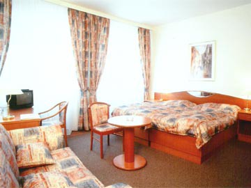 Все номера оборудованы удобной мебелью, соответствующей категории гостиницы. Большинство из номеров украшено оригиналами из творчества художников, окончивших Академию художеств Мирослава Гоуште и Зденека Гетце, и репродукциями мировых художников. Комната с душем и туалетом является составной частью всех номеров, комната с ванной по желанию заказчика (определенное количество)