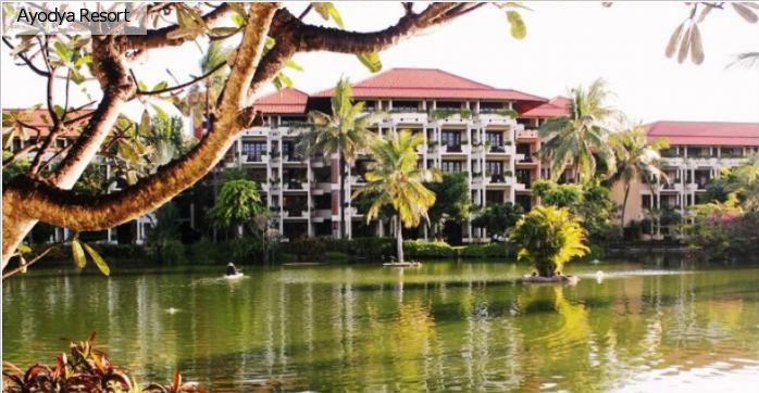 Ayodya Resort – розкішний п'ятизірковий готель, який нагадує балійський палац у всій величі. Справжнє відображення балійського мистецтва, кам'яні статуї, фонтани, басейни у вигляді лагуни, зображення міфічних персонажів із великого епічного Рамаяна прикрашають цей розкішний готель. Готель пропонує п'ять ресторанів та дві кімнати відпочинку. У готелі проводиться безліч розважальних заходів для дорослих та дітей. Готель пропонує гарний спектр послуг для маленьких мандрівників. У готелі є дитячий клуб, дитячий табір, послуги няні. Гостям пропонується світовий клас, послуги дворецького та безкоштовний доступ до Інтернету. Готель зручно розташований в оточенні пишних тропічних садів на білому піщаному пляжі в містечку Нуса-Дуа на острові Балі. За 5 хвилин ходьби від готелю знаходиться поле для гольфу. Міжнародний аеропорт Ngurah Rai знаходиться за 15 хвилин їзди від готелю. За 20 хвилин їзди від готелю знаходиться Кута-Біч і торговий район.