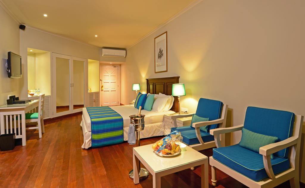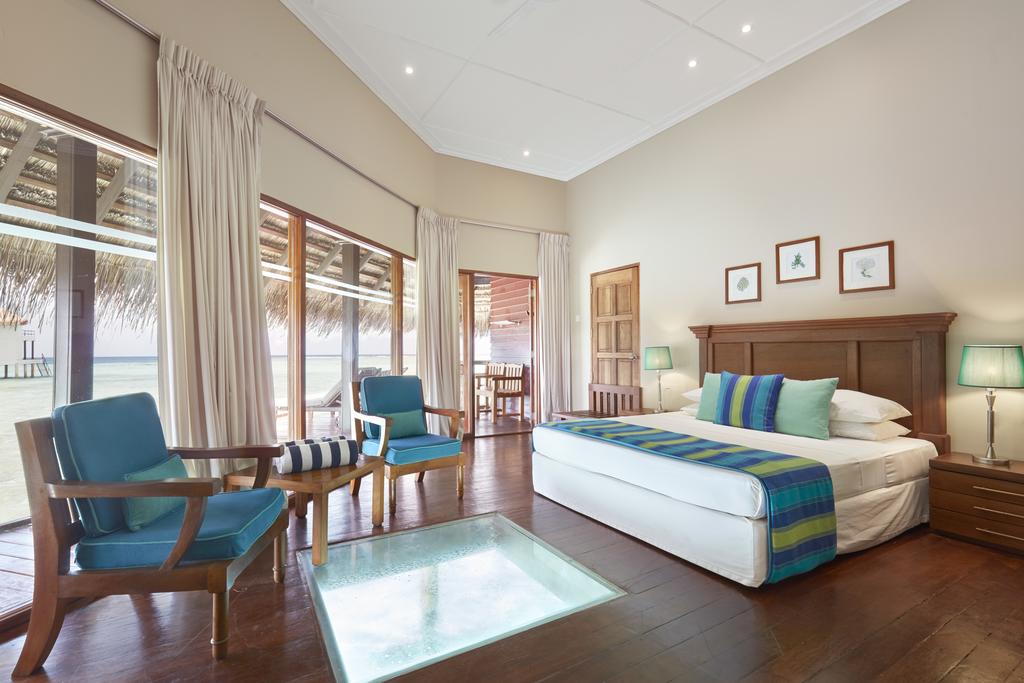 - ванна кімната з ванною або душовою кабіною та туалетним приладдям.У готелі 130 номерів: 96 стандартних номерів та 34 бунгало на воді. У стандартних номерах гостей зустріне класичний інтер'єр із елементами тропічного дизайну. У бунгало на воді гості прокидатимуться під шум хвиль і насолоджуватимуться зручністю дерев'яних меблів ручної роботи. У номерах є: