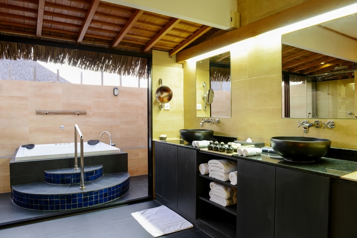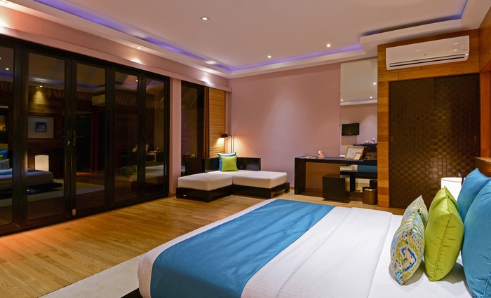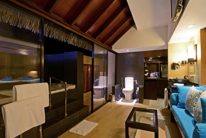 Всі вілли оснащені балконом, власними гідромасажними ваннами, міні-басейном і ванними кімнатами зі скляною підлогою, через який видно підводну флору і фауну, а також кондиціонером, LCD-телевізором з DVD-плеєром і китайськими телевізійними каналами, системою домашнього кінотеатру з об'ємом і театром. Серед зручностей також є персональні цілодобові послуги дворецького, у якого можна замовити вечерю на віллу. Передбачено вибір подушок. Крім того, гостям надається електричний чайник, тапочки та набір для догляду за зубами.
