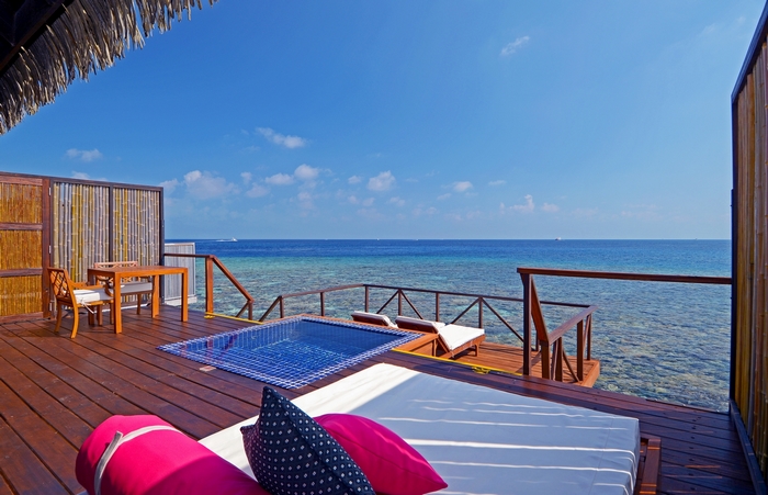 Hosti hotelyu Adaaran Prestige Vadoo mozhutʹ vykupatysya u vidkrytomu baseyn