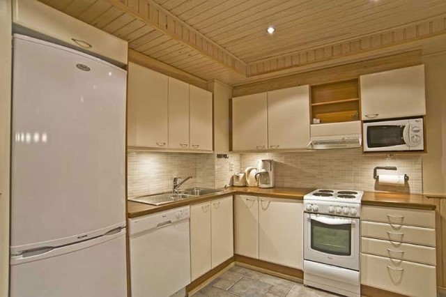 У котеджі:площа: 94 м2; вхід із першого поверху (один рівень); максимальне розміщення 8 осіб На першому поверсі: вітальня з міні-кухнею, 4 спальні (з 2 ліжками в кожній) Обладнання: камін, сауна, душ, туалет, холодильник, посудомийна машина, мікрохвильова піч, посуд, плита, кавоварка, тостер, ТБ, CD, DVD, сушильна шафа, праска, фен, дрова для каміна, Інтернет.