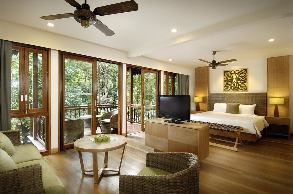 Гостям предоставляются просторные и очень уютные шале с отдельными балконами и современной мебелью, выполненные в малайском стиле и отделанные натуральным деревом. В каждом номере есть ванная комната с тропическим душем и ванной, где есть полотенца, халаты, тапочки и фен, в номере есть кондиционер, плазменный телевизор со спутниковыми каналами, телефон с прямым выходом на международную связь, сейф, мини-бар, набор для приготовления чая/кофе.