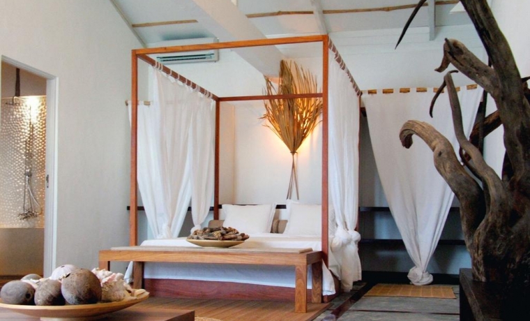 3 Deluxe Sea View Bungalow (40 м², макс. 2+1+1 infant). Спальня, ванна кімната з відкритим типом, тераса з видом на океан.