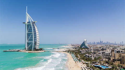 Готель є частиною комплексу Jumeirah Beach Resort, розташованого за 15 км на південь від Дубая. Підносячись над Перською затокою на 321 м, готель Burj Al Arab є найвищим готелем у світі. Це унікальна за своєю архітектурою 28-поверхова будівля, з вертолітним майданчиком на останньому поверсі. Будівля готелю Burj Al Arab побудована у формі вітрила і стоїть на штучно зведеному острові за 280 м від берега. До готелю Burj Al Arab веде міст, який закінчується фонтаном. Об'єднуючи останні технології з здавна відомою східною гостинністю, Burj Al Arab є символом Дубая і надає гостям воістину бездоганний сервіс. У холі Burj Al Arab немає звичної стійки реєстрації. У готелі класу "люкс" гостей реєструють індивідуально.