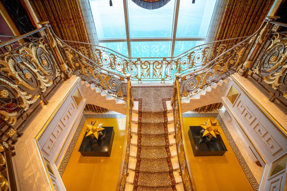 2 Presidential Suites- В оздобленні кімнат використано драпірування з ручною вишивкою з Індії, прекрасні килими з вигадливими малюнками, дуже багато натурального дерева і шкіри. Дерево для інтер'єру було привезено з Канади і Великобританії. Спальня - це витвір мистецтва. Чого варте одне тільки ліжко на обертовому подіумі, з дзеркалом 2 на 2 метри в масивній позолоченій рамі, прикріплене над ліжком. Гардеробна, наприклад, розміром з пристойну однокімнатну квартиру.