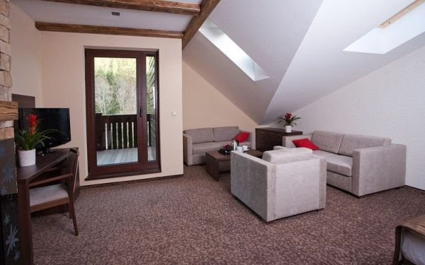 Кожен номер обставлений вишуканими меблями. Деякі номери вирізняються каміном та зручною зоною відпочинку. Також до послуг гостей безплатний доступ до Інтернету через кабельне підключення. Для дітей облаштована ігрова кімната з терасою та передбачена програма розваг.В двомісному номері plesnivec для 2-3 осіб є дві постійних ліжку, один розкладний диван, який можна використовувати як додаткове ліжко або для одного дорослого відвідувача, або для двох дітей віком до 12 років, У номері praslicka для 2-3 осіб знаходяться два постійні ліжка, один розкладний диван, який можна використовувати як додаткову постіль для одного дорослого відвідувача або для двох дітей віком до 12 років. У номері deluxe room praslicka для 3-4 осіб є три постійні ліжка, один розкладний диван, який може використовуватися як додаткове спальне місце, камін.Номер deluxe family room praslicka для 4-5 осіб розташований в мансарді велнес готелю, має дві окремі спальні (4 ліжка і 1 розкладний диван) і дві самостійні ванні кімнати (одна з ванною і одна з душовою кабіною), камін