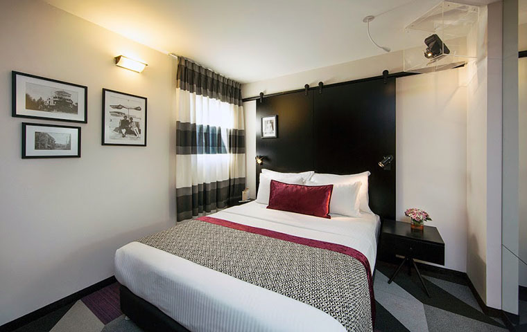 В отеле много оригинальных вещей из мира кино , проекторов, плакатов. Классические чёрно -белые фильмы показывают на экране в лобби, там же подают попкорн вместе с ключами от номера.