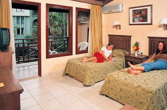 В номерах: - уборка номера: ежедневно, - смена белья: через день, - фен: есть, - телефон, - смена полотенец: ежедневно, - сейф: в номере, платно, - кондиционер: есть, - телевизор: есть, - ТВ: спутниковое, - балкон или терраса (не во всех номерах), - ванна или душ.