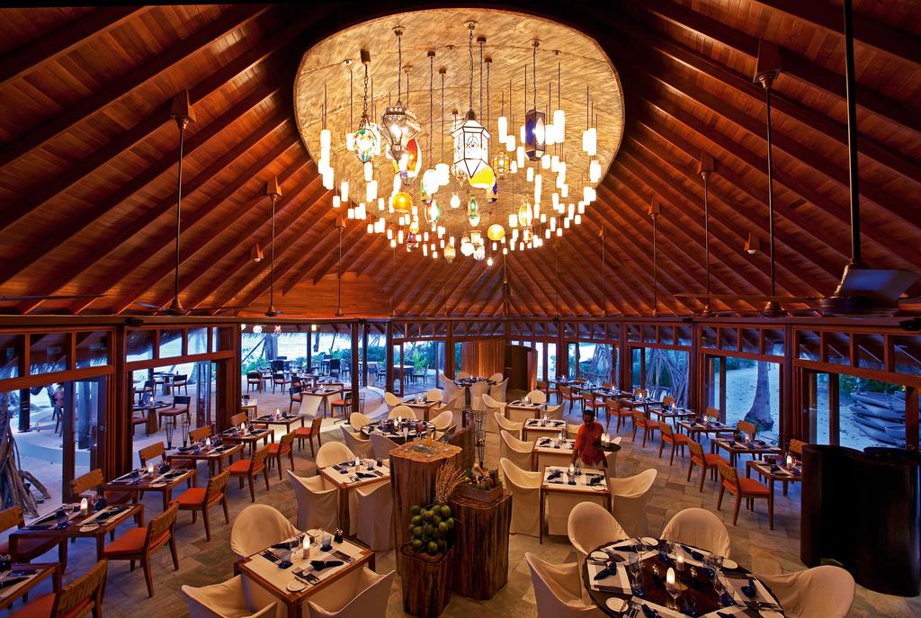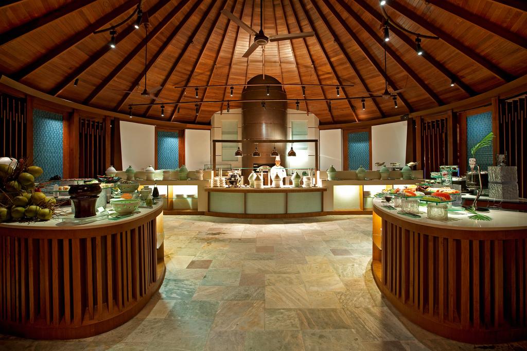 Основний бар-ресторан "JAHAZ" - відкритий на час сніданку та вечері, пропонує страви міжнародної кухні; тут проводяться тематичні кулінарні вечори. Спеціалізований бар-ресторан "JING" на воді - це злиття східних та західних кулінарних традицій; в меню – азіатські страви з відтінком європейської кухні. Ресторан-гриль на пляжі "MEERU" - зі столами на свіжому повітрі пропонує широкий вибір морських продуктів; знаходиться прямо на пляжі і привабливий своєю невимушеною обстановкою; відкритий на час обіду, вечері та тематичних вечорів. Бар “Jahaz” - близькість цього бару до басейну та пляжу та його уважний персонал дозволять Вам розслабитись у тіні пальм та пообідати на місці; після заходу сонця у барі Вам запропонують напої. Бар "JING" - бар з великою "терасою, що спливає в океан", розташований поруч з віллами "на воді"; Це ідеальне місце для любителів просто помріяти, відпочити в тиші або продегустувати екзотичний коктейль на заході сонця.