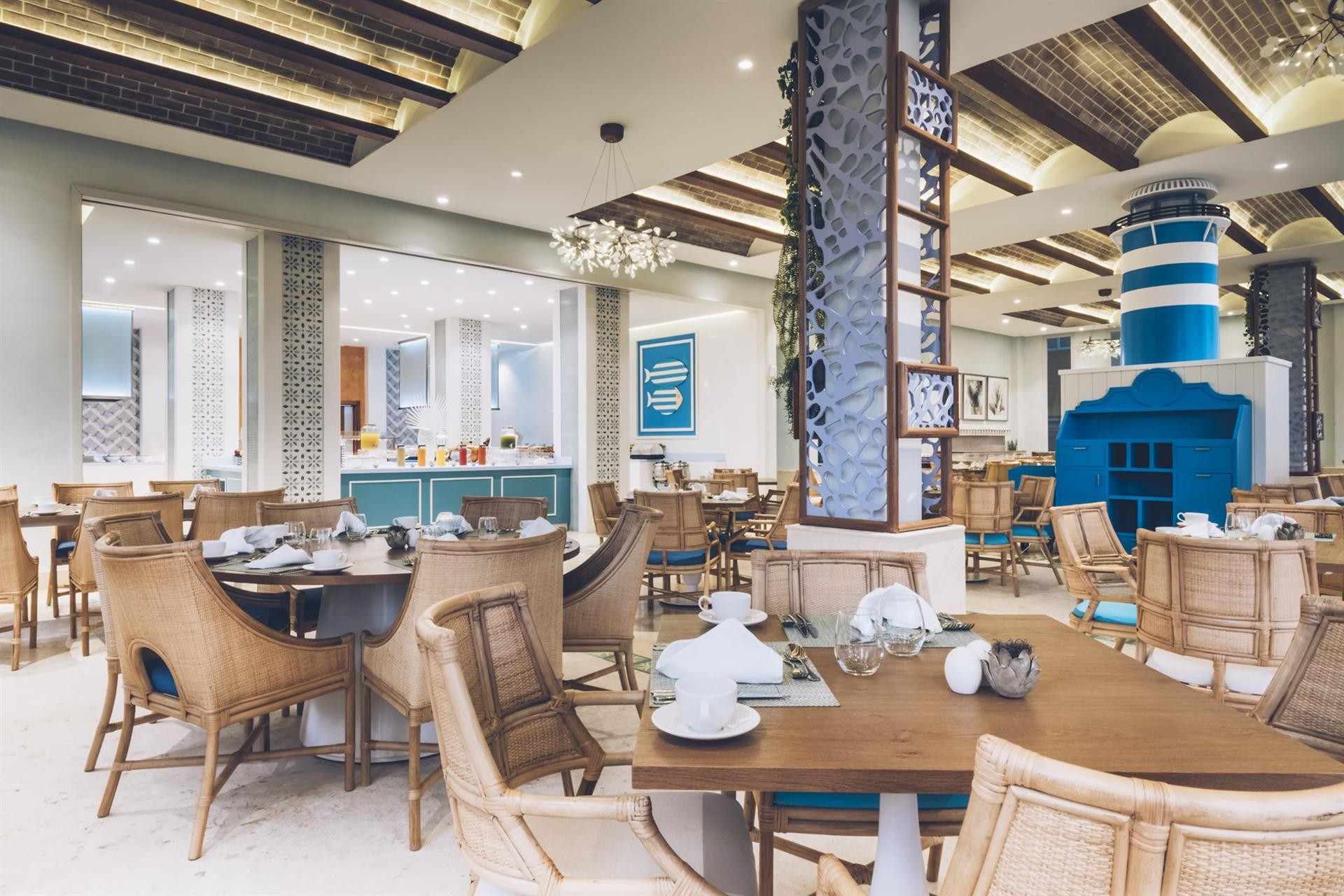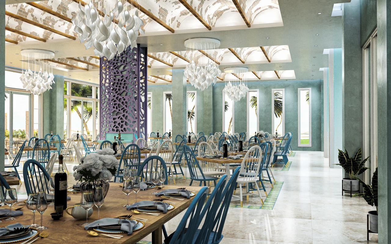 Jambalaya: американський ресторан. La Coupole: ресторан вишуканої кухні.Kabuki: японський ресторан (включено в систему "Все включено"). La Dorada: середземноморський ресторан. Steak House: м'ясний ресторан. Ілфорно: італійський ресторан. У ресторанах подається вечеря з 18.30-21.30. Los Haitises: сніданок з 07:00-10:00, обід з 12:30-15:00, вечеря з 18:30-22:00. Palapa (ресторан на пляжі): сніданок з 08:00-11:30, обід з 12:30-15:00, закуски вдень. 1 ресторан a la carte: 3, 1 (буфет із кулінарним шоу),