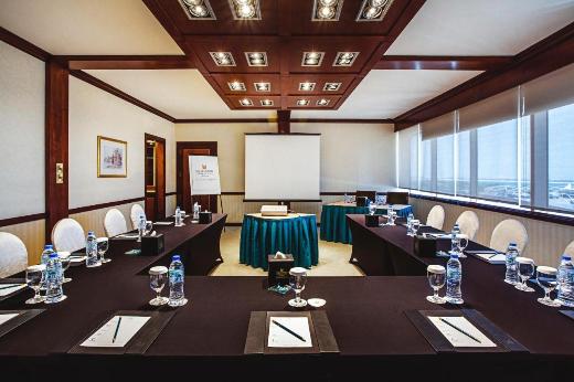 Royal Suite (174 кв.м) -люкс, гідний королівських осіб, з вітальнею та їдальнею для розваг гостей. З джакузі, головною спальнею з двоспальним ліжком та гостьовою спальнею з двома односпальними ліжками, ви матимете все необхідне для відпочинку та релаксації. Більше того, у вас буде доступ до клубного лаунжу, де ви зможете насолоджуватися прохолодними закусками та напоями з білого та червоного винограду протягом усього дня. Також доступні послуги чистки взуття, пральні та хімчистки зі знижками.
