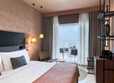 Domes of Corfu, оточений незайманою природою та безкрайніми просторами овіяного міфами Іонічного моря, є пишною зеленою гавань, де справжня грецька гостинність гармонійно поєднується з сучасною концепцією розміщення та елегантною архітектурою комплексу. Насолоджуйтеся єднанням і умиротворенням або вирушайте в приголомшливу пригоду. Широкий піщаний пляж з кришталево чистою водою розташований всього за кілька кроків від готелю. Агора під відкритим небом (The Core) та різноманітні дитячі розваги, включаючи ясла та ультрасучасний дитячий клуб. Зони тільки для дорослих та для сімейного відпочинку, сучасний спа-салон та безліч барів та ресторанів доповнюють картину. Міжнародний аеропорт Корфу: 15 км. Село Пелекас: 4 км