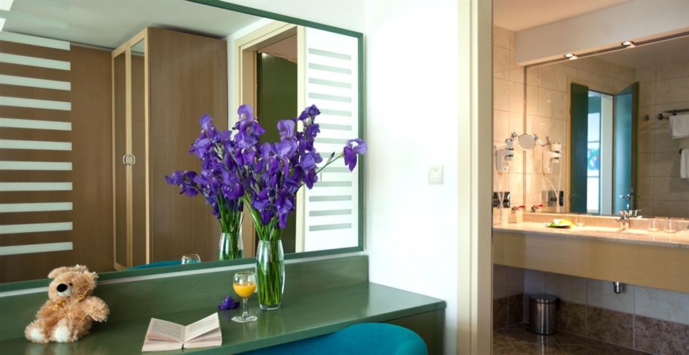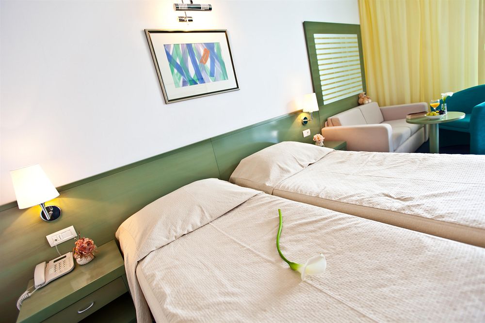 кондиционер, телевизор, телефон, мини-бар, ванная комната с душем и туалетом, большинство номеров с балконом и видом на море.