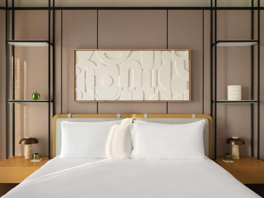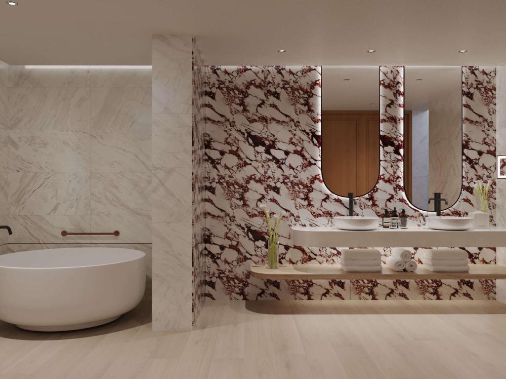 Номери та люкси Delano Dubai створені для того, щоб пробуджувати та заспокоювати почуття. Текстиль, оздоблення та форми передають м'яку плинність, що відображає острівне розташування, просякнуті легкістю та повітряністю, що ідеально підходить для відпочинку. Спеціальні люкси поєднують виняткові краєвиди з розкішно облаштованими житловими приміщеннями, кульмінацією яких є неперевершений пентхаус Delano. Rising Light Guestroom With Resort View (40 кв. м) - сучасний, але м'який декор і розкішна фурнітура визначають номер, створений для відновлення сил. З мебльованого балкона відкривається частковий вид на море або пишний сад, а повністю мармурова ванна кімната оснащена окремою ванною і тропічним душем. Rising Light Guestroom with Garden View (40 кв.м) - Власний сад є визначальною особливістю цього номера на першому поверсі. Інтер'єр пропонує прохолодний відпочинок від сонячних днів, поєднуючи сучасний дизайн з вишуканими матеріалами для максимального сучасного комфорту. Rising Light Guestroom With Sea View (40 кв.м) - Блискучий вид на море незабутній у цьому наповненому світлом номері з окремим балконом, звідки можна насолоджуватися видом на море. Мармурова ванна кімната додає розкоші стриманим інтер'єрам, обставленим сучасними меблями в м'якій, спокійній палітрі. Midnight Dawn Suite With Sea View (55-60 кв.м) - Захоплюючий вид на море привертає увагу в люксі з окремими зонами вітальні та їдальні, обставленими вигнутими меблями, що повторюють плинність навколишньої води. Ванна кімната, оздоблена мармуром насичених відтінків, оточує гостей найкращими речами. Waking Eclipse Suite With Resort View (73-76 кв.м) - Шикарний, сучасний декор перетікає з вітальні та їдальні з вбиральнею в спальню цього розкішного люкса. Розслабтеся на свіжому повітрі на приватній терасі з частковим видом на море або басейн, або ж у ванній кімнаті з повністю мармуровою ванною. Waking Eclipse Suite With Sea View (73-76 кв.м)- Мерехтливий вид на море в поєднанні з не менш натхненним декором створюють люкс, який однаковою мірою стимулює і заспокоює. Балкон або окрема вітальня - це місце, де можна по-справжньому розслабитися, так само, як і ванна у повністю мармуровій окремій ванній кімнаті. Breaking Waves Suite With Terrace (77 кв.м) - Мерехтливий вид на море в поєднанні з не менш натхненним декором створюють люкс, який одночасно стимулює і надихає. Балкон або окрема вітальня забезпечують простір для справжнього розслаблення, так само як і джакузі у повністю мармуровій ванній кімнаті. Breaking Waves Suite With Private Pool (77 кв.м)- Люкс на першому поверсі підноситься на нові висоти розкоші завдяки приватному басейну, розташованому всього за кілька кроків від незайманого пляжу. Природні впливи проникають всередину завдяки сучасному дизайну, який охоплює плавність м'яких, вигнутих силуетів і багатих текстур. The Collins Suite (148-156 кв.м)- Власна тераса з безперешкодним видом на Перську затоку тягнеться вздовж усього цього вишуканого люкса. Простора і розкішна вітальня, розташована поруч з невеликою міні-кухнею, оточена двома розкішними, безтурботними спальнями, кожна з яких має мармурову окрему ванну кімнату. Пентхаус Delano (875 кв.м)- Неперевершений у Дубаї пентхаус з 5 спальнями розташований на приватному поверсі, звідки відкривається незайманий вид на горизонт і море з двох просторих терас, басейну та дизайнерських інтер'єрів, виконаних на замовлення з використанням найкращих матеріалів.