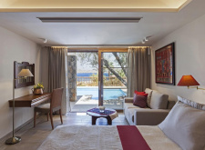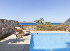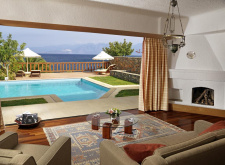 Minoan Royalty Villa One Bedroom Sea View Private Pool - 65-75 кв.м (макс.3), спальня, вбиральня, вітальня, ванна кімната, веранда з індивідуальним басейном, що підігрівається. Вілла має окремий вихід до пляжу