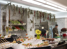 Ambrosia (основний ресторан). Сніданок та вечеря, тематичні вечері. A la carte Restaurant (біля басейну). Відкритий увечері. Для гостей з харчуванням «напівпансіон» пріоритетне бронювання столика в один із днів з доповненнями. Лобі-бар на терасі. Бар Paradiso на пляжі