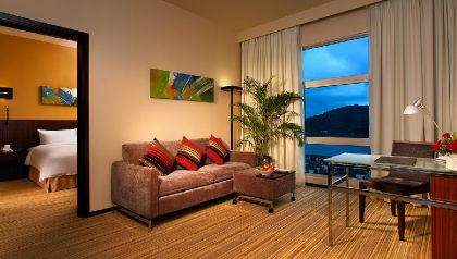 В отеле 328 современно обустроенных номеров двух катерогий: Deluxe двухместный или трехместный, Suite. В каждом номере есть:кондиционер, плазменный телевизор со спутниковыми каналами, рабочий стол,телефон, сейф, мини-бар, набор для приготовления чая/ кофе; в ванной комнате с ванной и душем есть полотенца, халаты, тапочки и фен.