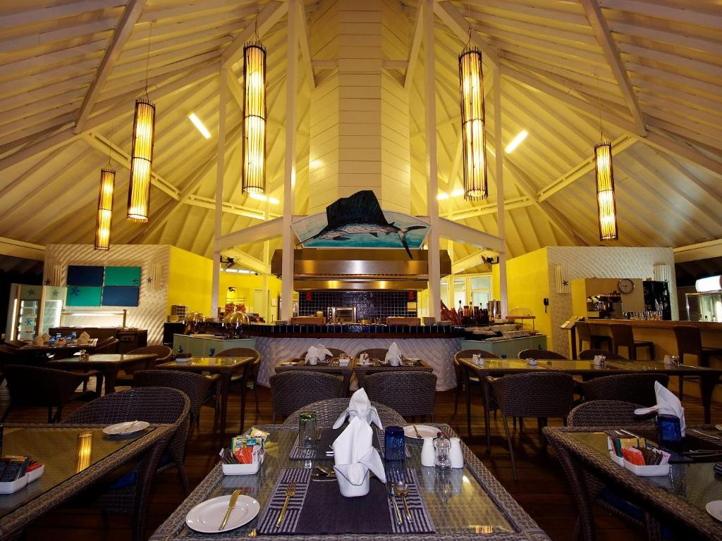 У ресторані Madi протягом дня подають страви міжнародної кухні у вигляді «шведського столу». Ресторан Malamathi Restaurant пропонує меню a la carte з багатим вибором страв регіональної та міжнародної кухні, різноманітні напої. У барі Iruohsneeможна замовити тропічні коктейлі та помилуватися видом на захід сонця.