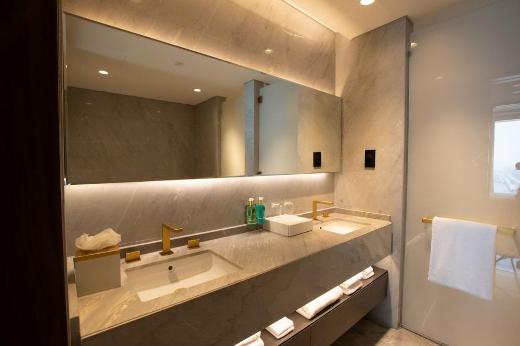 Junior Suite- від якого перехоплює подих. До 82 кв.м додаткової житлової площі створює повітряну та розслаблюючу атмосферу. Люкс має вікна на всю довжину з фантастичним видом, надзвичайно зручне двоспальне ліжко розміру "king-size", гардеробну кімнату та окремий балкон з видом на горизонт Дубаю. Розмір 55 m2. Luxe One Bedroom Suite- До 129 кв.м додаткової житлової площі, одна окрема спальня, гламурна гардеробна, окрема ванна кімната та вітальня. Справжній розкішний дім далеко від дому. Розмір 80 m2, приголомшливий вид на захід сонця та пристань для яхт і океан. У номерах: Шезлонги на власному балконі