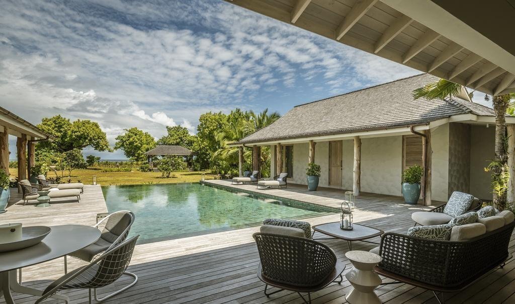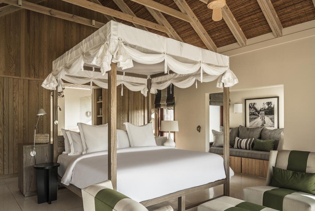 У готелі 71 номер: Ocean View Pool Villa (56-65 м ², макс. 2 чол.). Розташований у південній частині острова на пляжі Coral Beach, вид на океан. Спальня з ліжком king-size, ванна кімната з ванною і душем, душ на вулиці, приватний басейн, альтанка (cabana). Beach Bungalow (54-65 м ², макс. 2 +1 чол.). Розташовані у північній частині острова з частковим видом на океан. Спальня з ліжком king-size, ванна кімната з ванною та душем, душ на відкритому повітрі, приватний басейн. Sunset Beach Villa (65 м ², макс. 2 чол.). Розташований в західній частині острова на пляжі Sunset Beach, вид на океан. Двоповерхові вілли: на першому поверсі – спальня з ліжком king-size, ванна кімната з ванною та душем, душ на відкритому повітрі; на другому поверсі – балкон. Приватний садочок з басейном та альтанкою (cabana). Sunset Beach Suite (105 м², макс. 2+2+1 infant). Розташований в західній частині острова на пляжі Sunset Beach, вид на океан. Спальня з ліжком king-size, окрема вітальня, ванна кімната з ванною та душем. Приватний садочок з басейном та альтанкою (cabana). Two-Bedroom Villa (159 м², макс. 4 або 2+2+1 infant). Розташовані у північній частині острова з частковим видом на океан. Дві спальні (ліжка king-size), дві ванні кімнати (у кожній – ванна, душ і душ на відкритому повітрі), вітальня з обідньою зоною, приватний басейн. Three-Bedroom Residence Villa (164-261 м ², макс. 6 чол.). Розташовані у північній частині острова з частковим видом на океан. Три спальні (дві з ліжками king-size; одна з ліжками twin), 3 ванні кімнати, вітальня з обідньою зоною, невелика кухня, приватний садок з басейном та відпочинковою зоною на відкритому повітрі. Desroches Suite (233 м², макс. 4+2+1 infant). Розташований в західній частині острова на пляжі Sunset Beach, вид на океан. Дві спальні (ліжка king-size), дві ванні кімнати (у ожній – ванна, душ і душ на відкритому повітрі), вітальня з обідньою зоною, приватний басейн. Four-Bedroom Residence Villa (201-332 м ², макс. 8 чол.). Розташовані в північній частині острова з частковим видом на океан, на відстані від пляжу. За наповненням ідентичні номерам Three-Bedroom Residence Villa, але мають додаткову спальню, розташовану в окремому павільйоні. 4 ванні кімнати, ТБ-кімната, повністю обладнана кухня, їдальня, приватний басейн, послуги батлера. Five-Bedroom Residence Villa (211-396 м ², макс. 10 чол.). Розташовані у північній частині острова з частковим видом на океан. За наповненням ідентичні номери Four-Bedroom Residence Villa, але мають додаткову спальню та ванну кімнату. Приватний басейн, послуги батлера. Three-Bedroom Presidential Villa (392 м ², макс. 6 +2 чол.). Розташовані у північній частині острова з частковим видом на океан. Три спальні (дві з ліжками king-size; одна з ліжком queen), 3 ванні кімнати, вітальня, обідня зона, тренажерний зал. Приватний басейн, зона відпочинку на вулиці, послуги батлера. Seven-Bedroom Presidential Villa (710 м ², макс. 14 чол.). Розташовані у північній частині острова. 7 спалень, 7 ванних кімнат, вітальні з обідніми зонами, зони відпочинку на відкритому повітрі, приватний басейн, послуги батлера. Доступні зручності: басейн, халат, телевізор: є, міні-бар, ванна та душ, набір для приготування чаю/кави, телефон, фен: є, тераса, кондиціонер: є, Інтернет: Wi-Fi, безкоштовно (стандартний пакет), прибирання номера: щоденно, сейф: є, душ (на відкритому повітрі), room service: цілодобово, платно,пральня платно