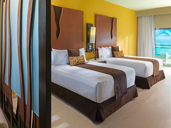 Ocean Front One Bedroom Suite – 67 м², макс. 3+2/2+1 child + 1 teen чол. | ліжко king-size/2 queen-size + диван-ліжко, ванна кімната з подвійною раковиною, заскленою душовою кабіною та гідромасажною ванною. Ocean Front One Bedroom Swim Up Suite (1-3 рівень) – 67 м², макс. 3+2/2+1 child + 1 teen чол. | ліжко king-size/2 queen-size + диван-ліжко, ванна кімната з подвійною раковиною, заскленою душовою кабіною та гідромасажною ванною, власний пейзажний басейн