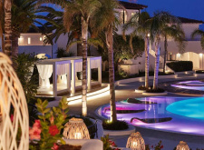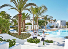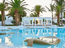1 великий ландшафтний басейн з джакузі з морською водою (700 м2, увечері підсвічується). Дизайнерські ліжка-шезлонги. Сонячні тераси. Шезлонги у воді у формі пелюстки лілії. Парасольки. Пляжні рушники – безкоштовно. Інфраструктура: Wi-Fi інтернет на всій території готелю (безкоштовно). Інтернет-куточок.SunStore сувенірний бутік. Міні-маркет. Лікар на виклик - цілодобово (платно). Дітям безкоштовно: дитячі ліжечка, підставка для умивальника, прилади для підігріву пляшечок, стерилізатор для пляшечок, електрочайник, стільці для годування (тільки в ресторанах). Платно: коляски (тростина), матраци для сповивання, дитячі горщики та сидіння, дитячі ванни, переносне сидіння-люлька, радіо-няня. Дитячий клуб Grecoland (дітям від 4 до 12 років у певні години, дитячий майданчик, ігри, змагання та ін. GrecoTeens: (для підлітків 13-17 років) із середини червня по середину вересня. Готель розташований на піщано-гальковому пляжі завдовжки 300 м. Пляж відзначений «Європейським блакитним прапором». Парасольки, шезлонги та пляжні рушники – безкоштовно. Пляж обладнаний білими наметами (безкоштовно для всіх вілл). Сервіс на пляжі з 10:00 до 18:00.